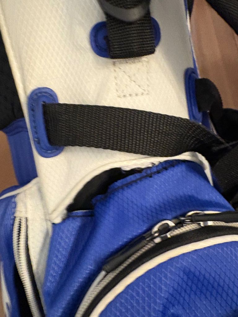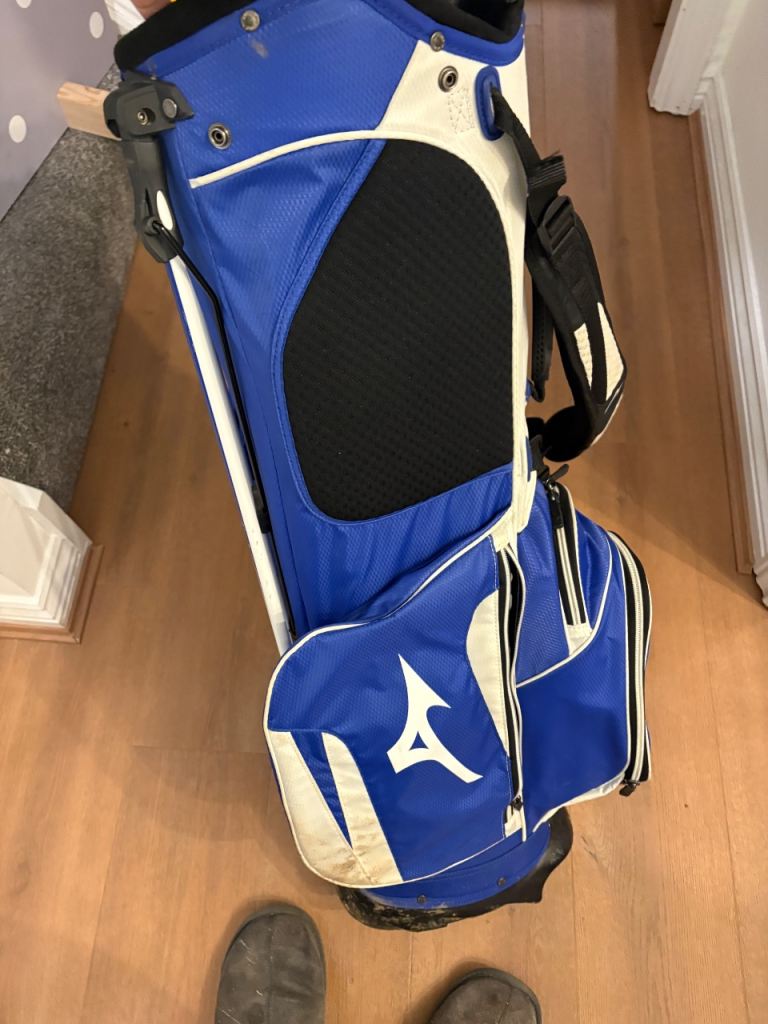 Here is a golf bag there has a hole just above the pockets easy fix if I get time before it sells I’ll do it headcover is the wrong one so could do with a new one but apart from that a great bag no longer needed any questions just ask