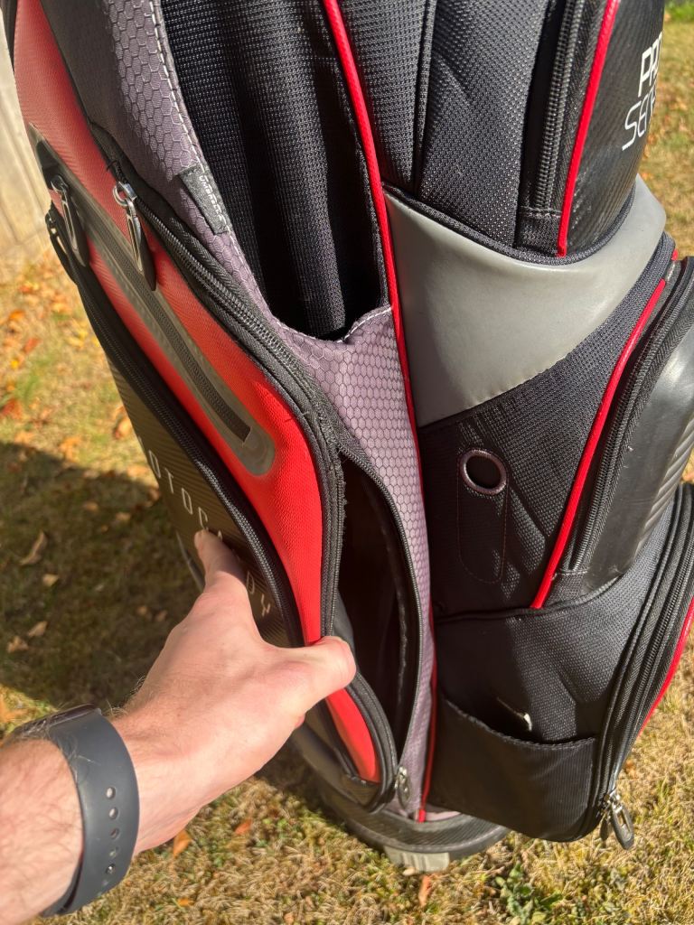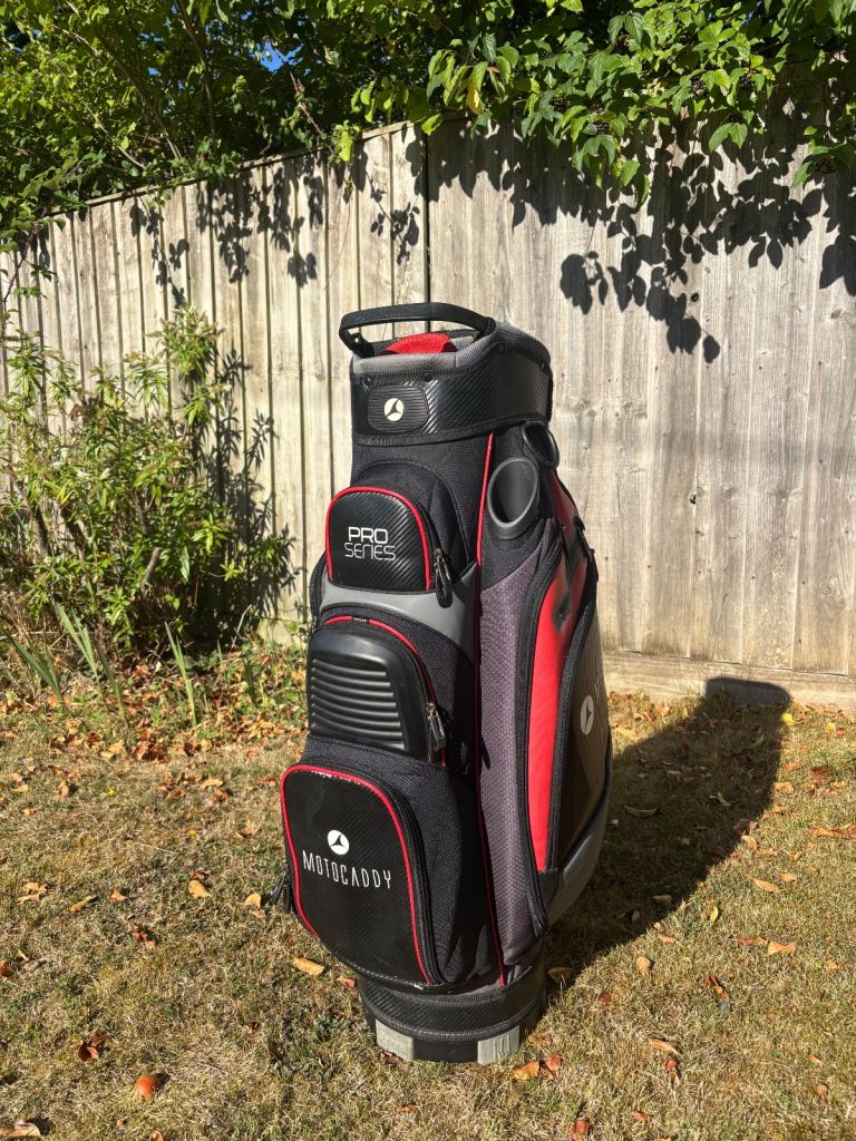 Motocaddy trolley bag for sale. The handle at the top is snapped and one pocket only partially opens at the bottom, as shown in pictures. Still works perfectly and handle not needed due to being a trolley bag. Otherwise near new condition and a very good quality bag, selling as it doesn’t match my new trolley. Collection from Weston on the Green.
