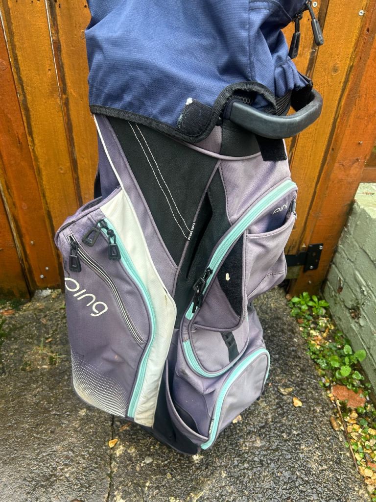 The Ping Traverse Cart Bag is a large-sized golf bag made from durable polyester material in a stylish and rare purple colour.