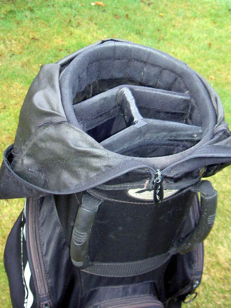 The velour lining on the six-way divider has done its job of protecting the club shafts and as a consequence has the the expected cosmetic signs of use.