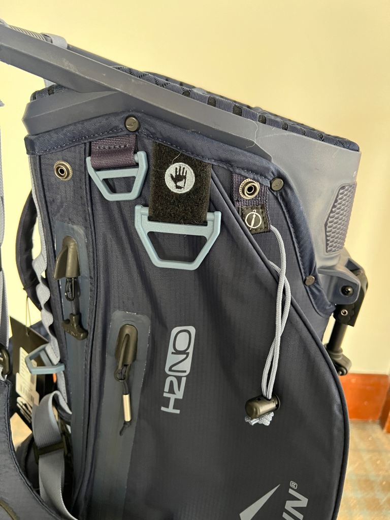 High quality Sun Mountain VLO H2NO Lite 14-Way Hybrid Stand Golf Bag is a premium waterproof golf bag. Made from durable nylon material, this bag features 14 dividers for organizing clubs and 6 pockets for storing essentials. The bag comes in a stylish blue colour.