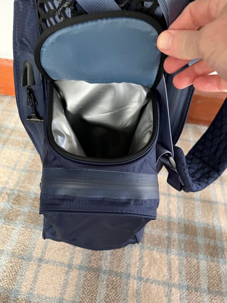 Hybrid design stand bag equally good for carrying or fitting to trolley or buggy.
