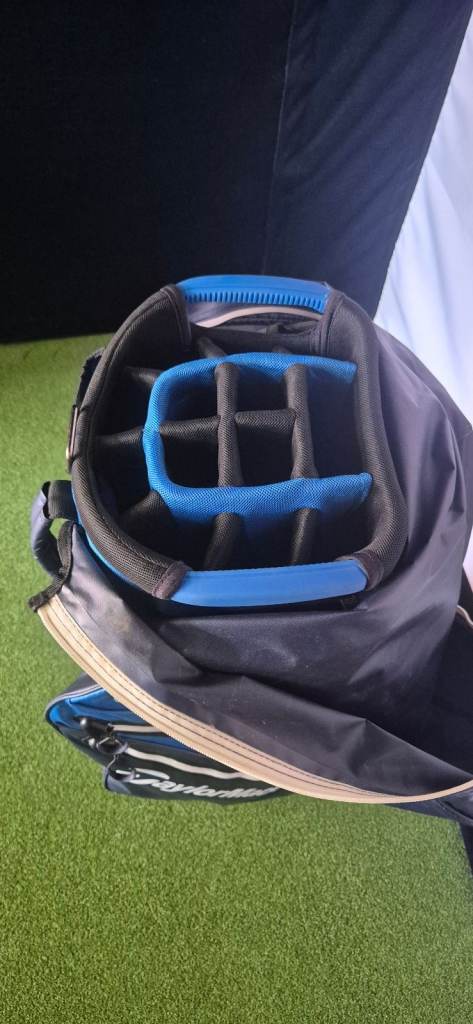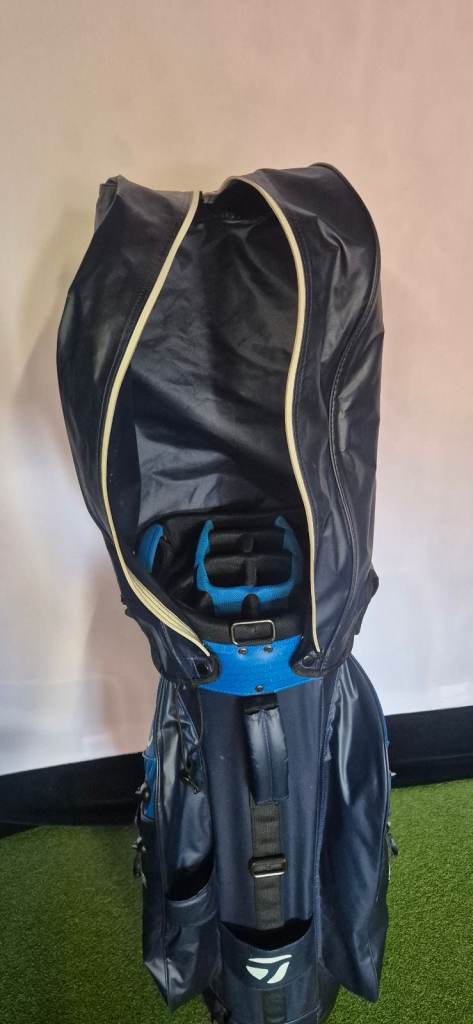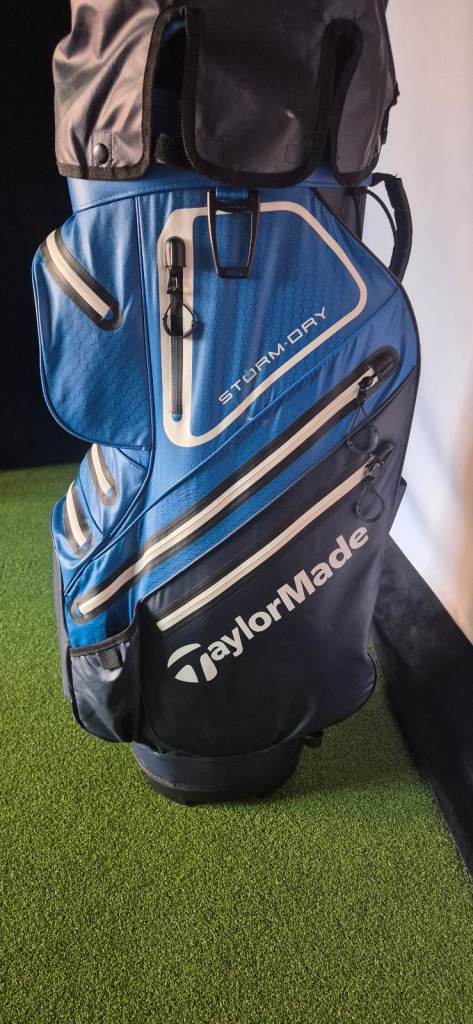 The TaylorMade waterproof cart bag features a 14 way top divider system with three full-length dividers to keep your clubs in order and easy grab handles to make manoeuvring the bag around easy.