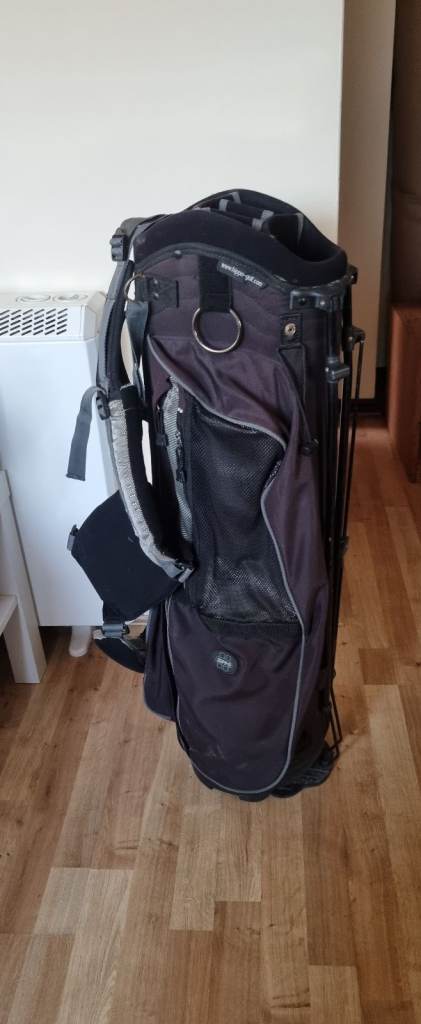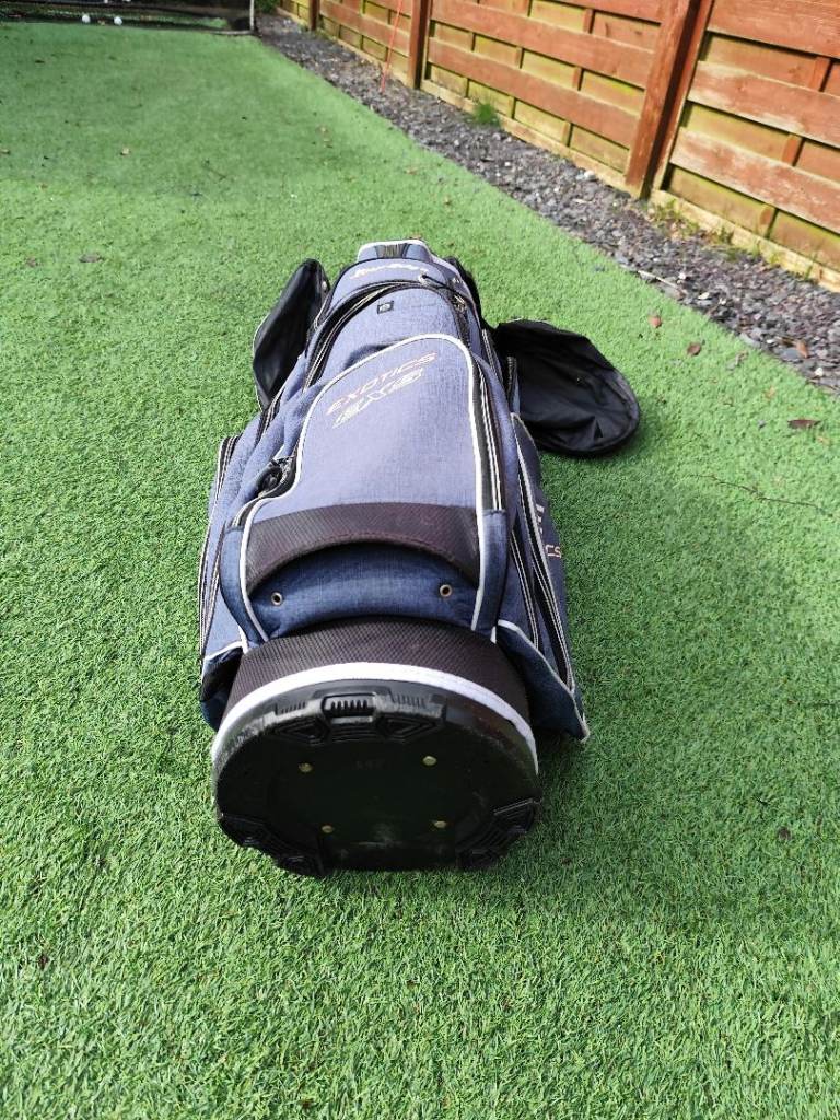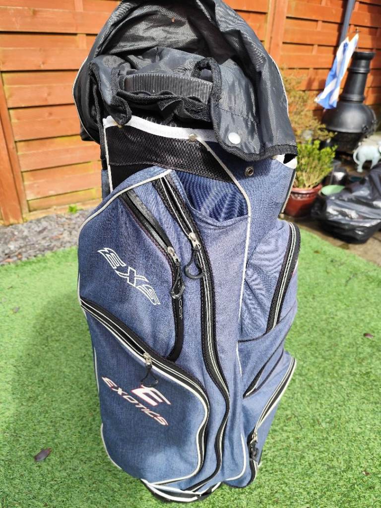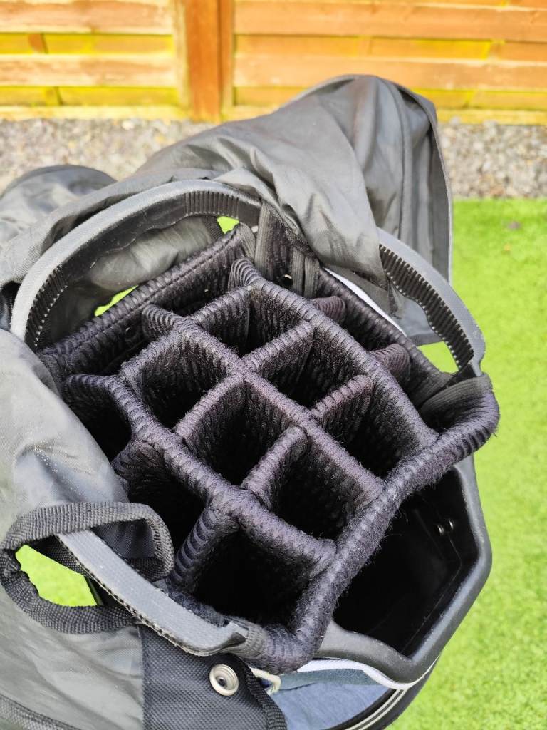 Large but light weight Tour Edge golf bag complete with carry strap (not shown) and hood. Very good condition with no tears or rips and all zips work. Cool pocket, waterproof pocket and score card holder. Will fit Powacddy and Motocaddy trolleys.