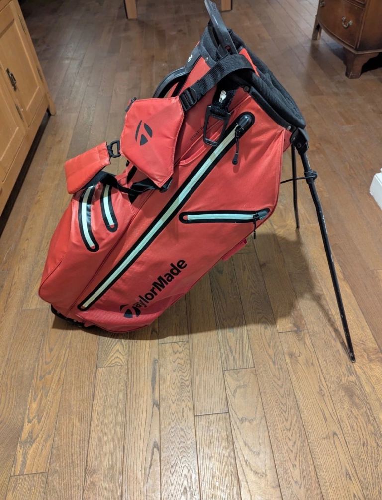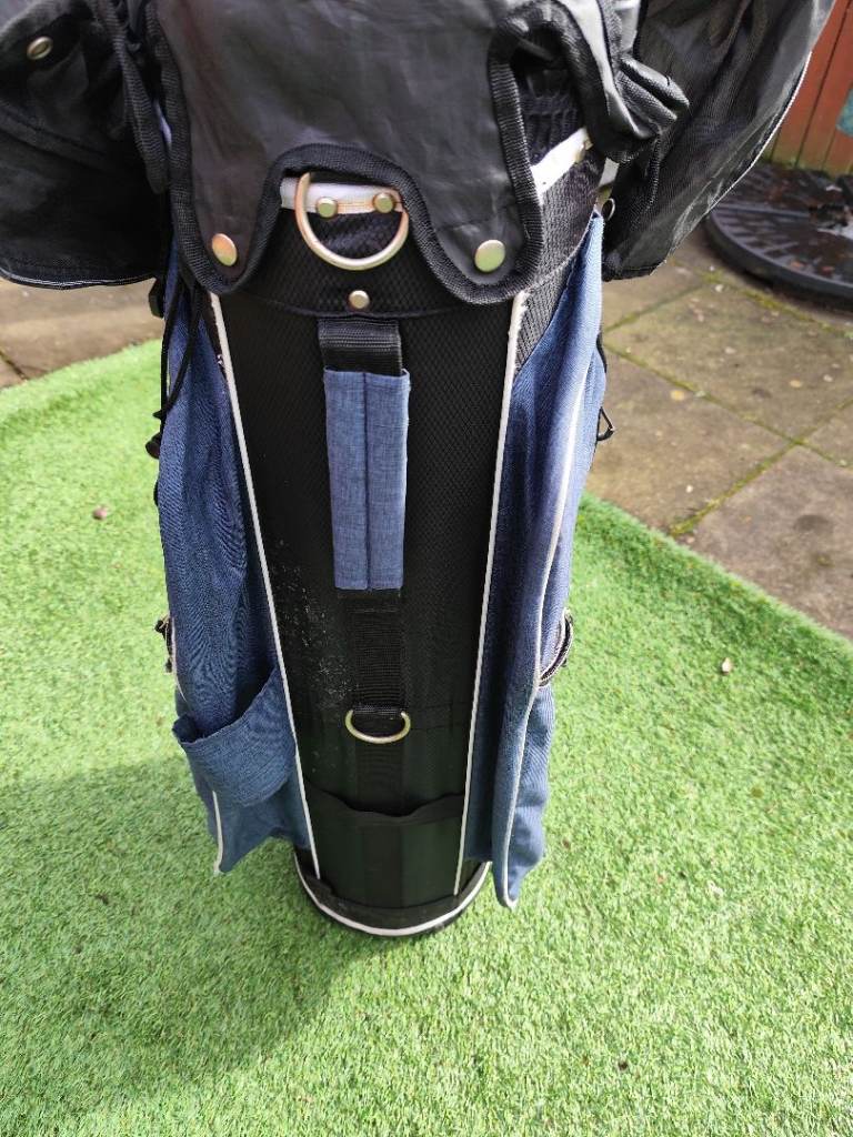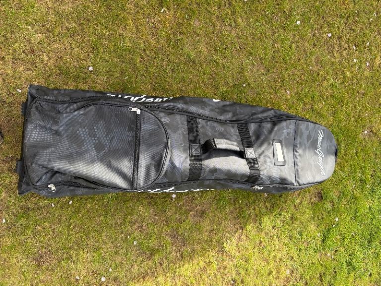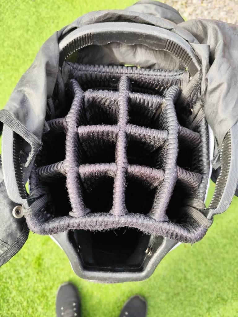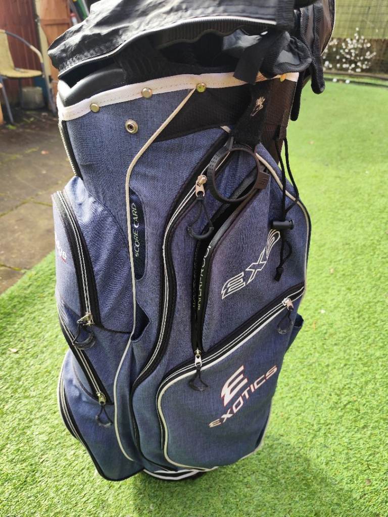 Large but light weight Tour Edge golf bag complete with carry strap (not shown) and hood. Very good condition with no tears or rips and all zips work. Cool pocket, waterproof pocket and score card holder. Will fit Powacddy and Motocaddy trolleys.