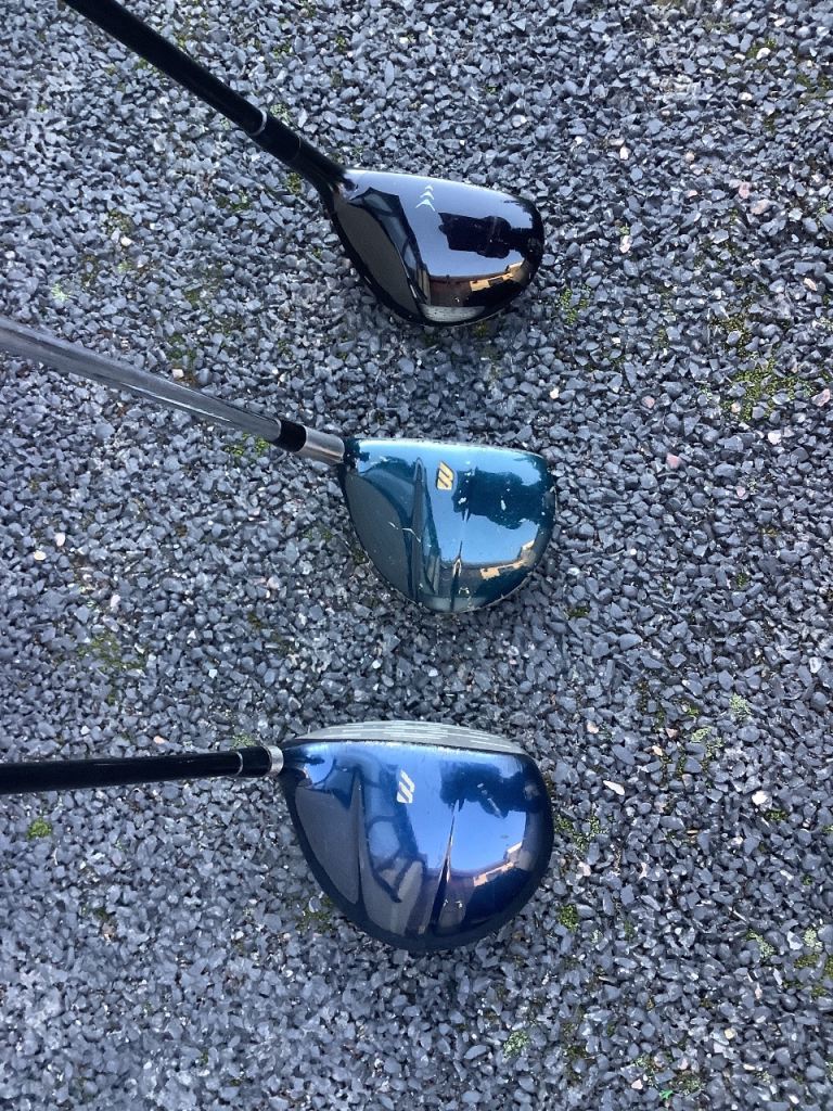 3 Mizuno Zoid titanium metal wood with a graphite shaft and a new protective head cover