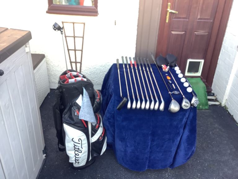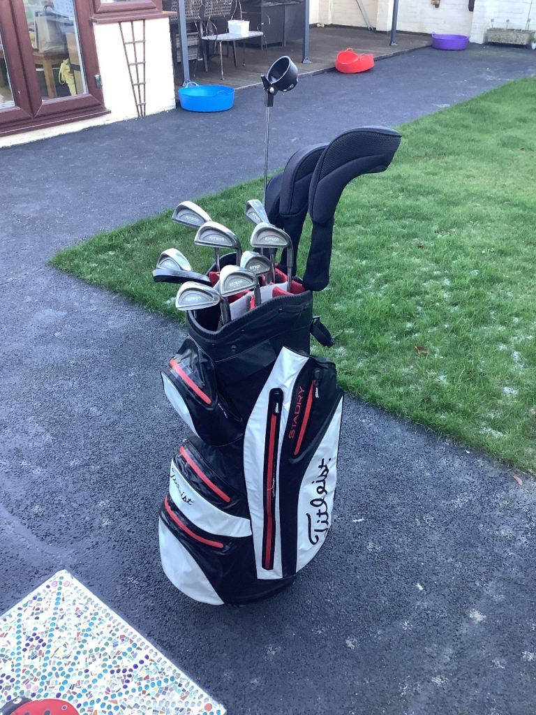 Set of Mizuno Astron golf clubs, in a lovely lightweight Titleist golf bag.