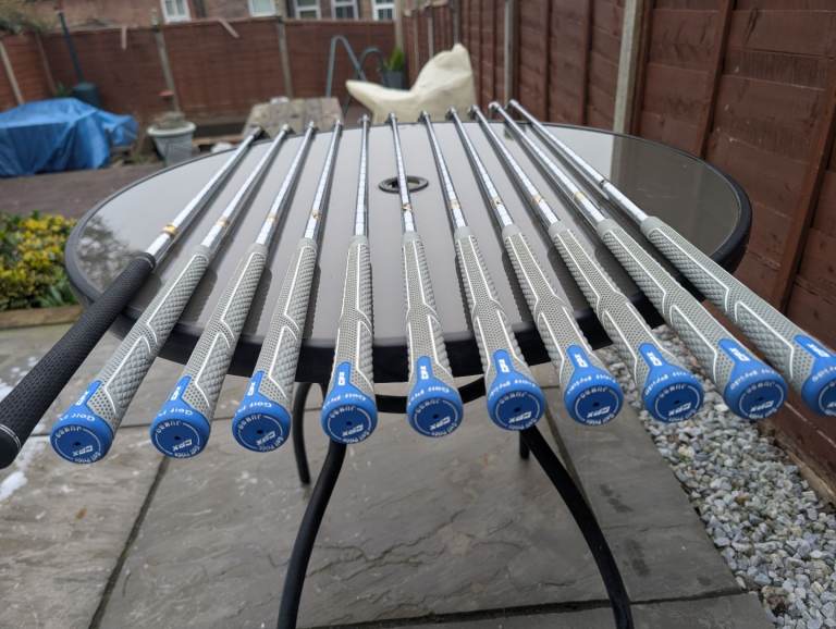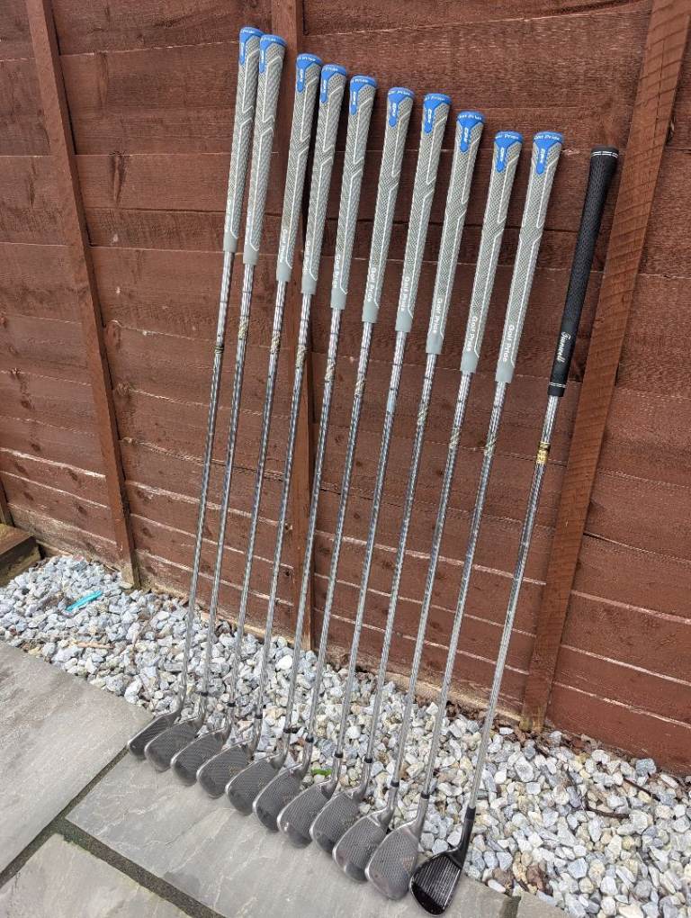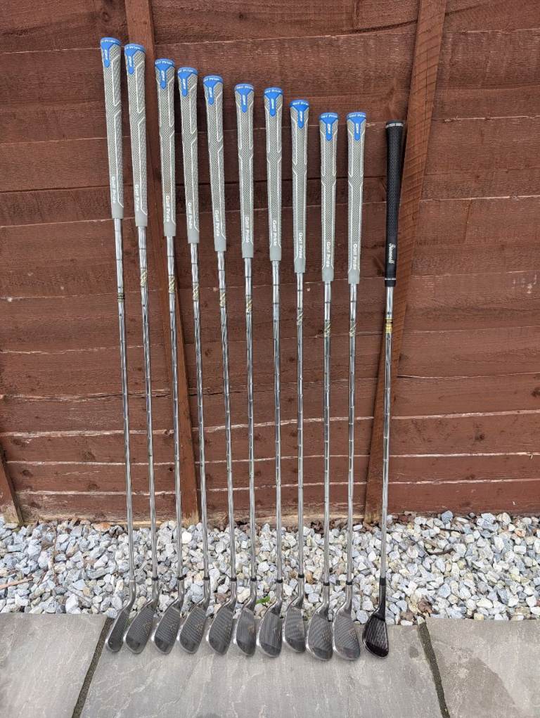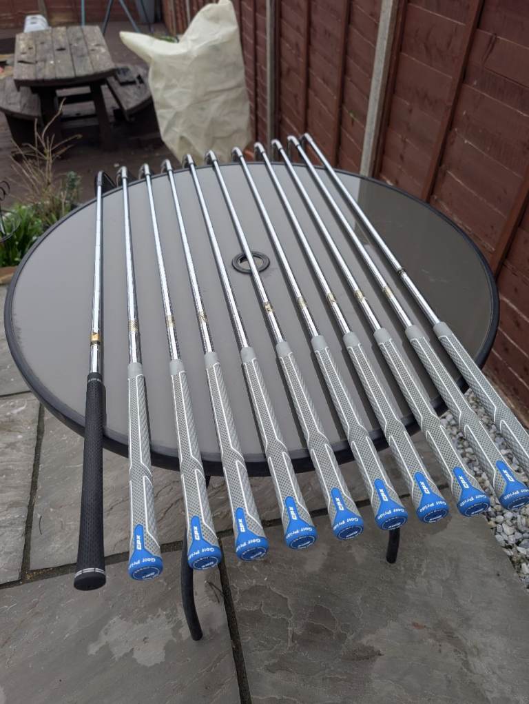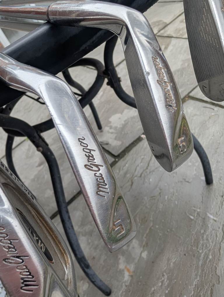 Full set (3 to SW) of Macgregor irons , plus a 1 iron and a lob wedge , all regripped with "Golf Pride" CPX grips . I also have 2 spare new golf pride grips included too