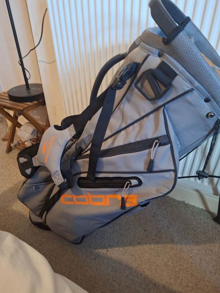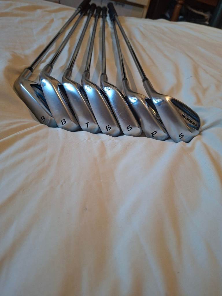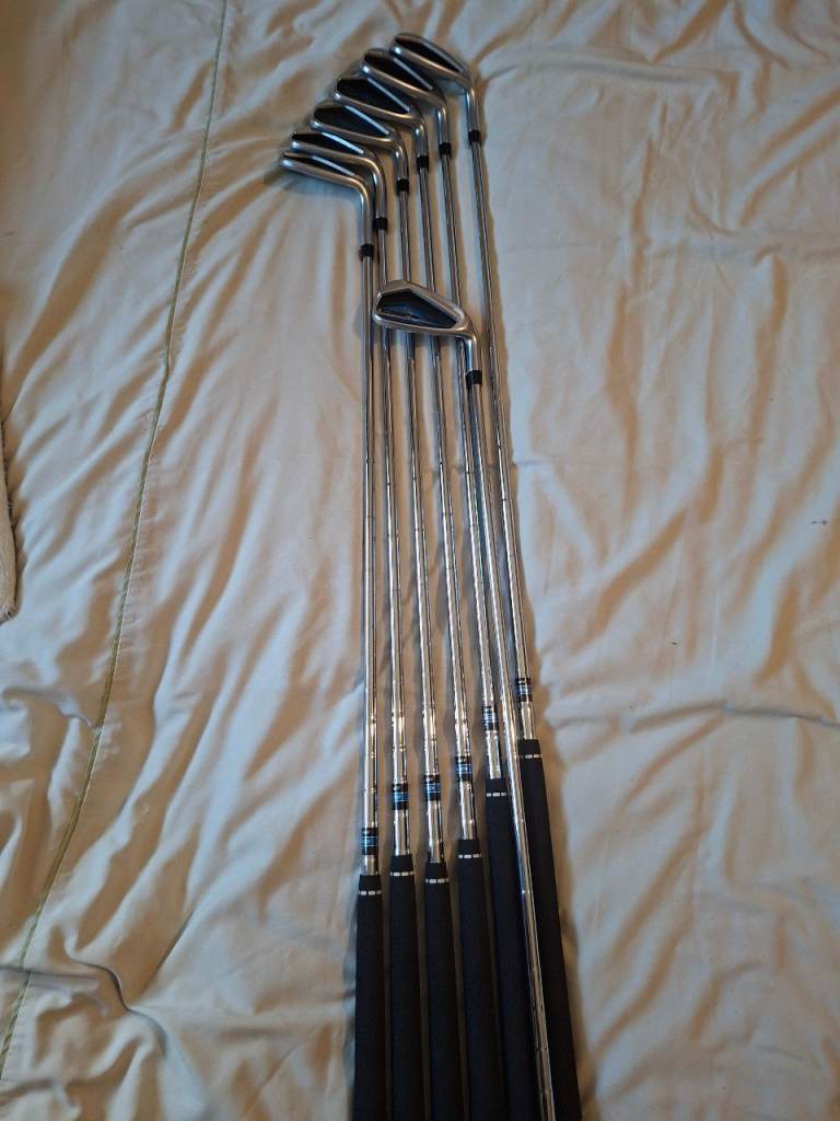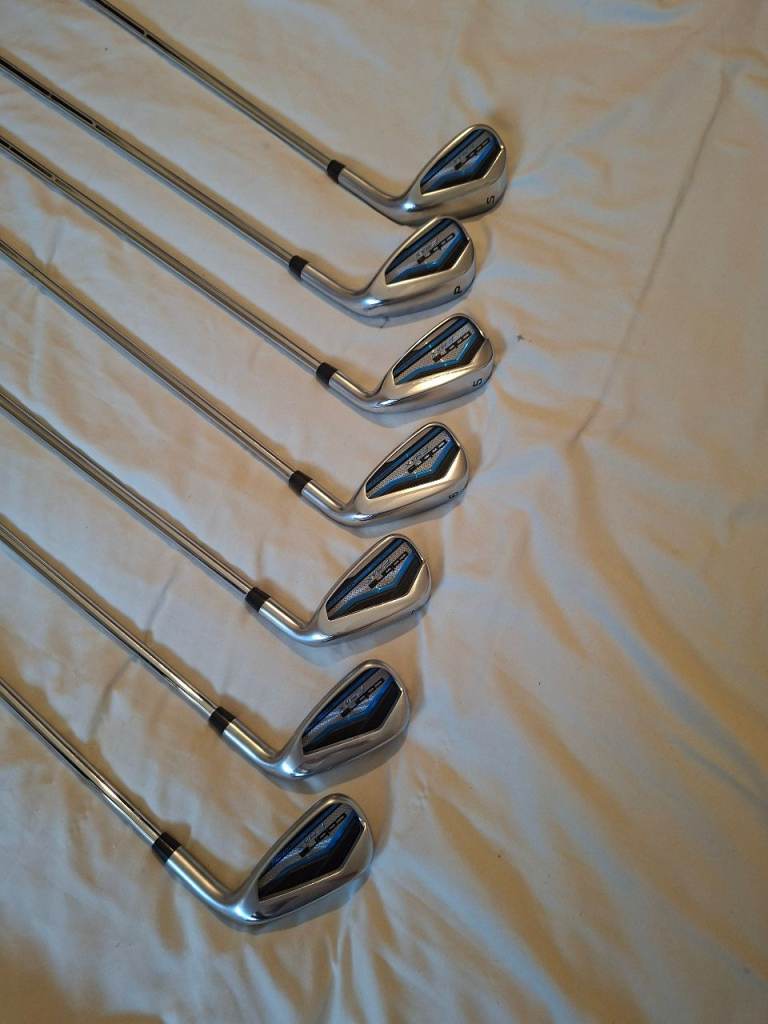 Hi here im selling my irons and bag only selling due to a recurring back problem. Irons are right handed numbers 5 6 7 8 9 sand wedge pitching wedge and in excellent condition like new .. and my cobra carry bag with tripod legs again in perfect condition thanks for looking.