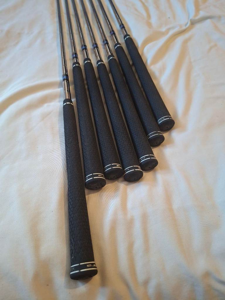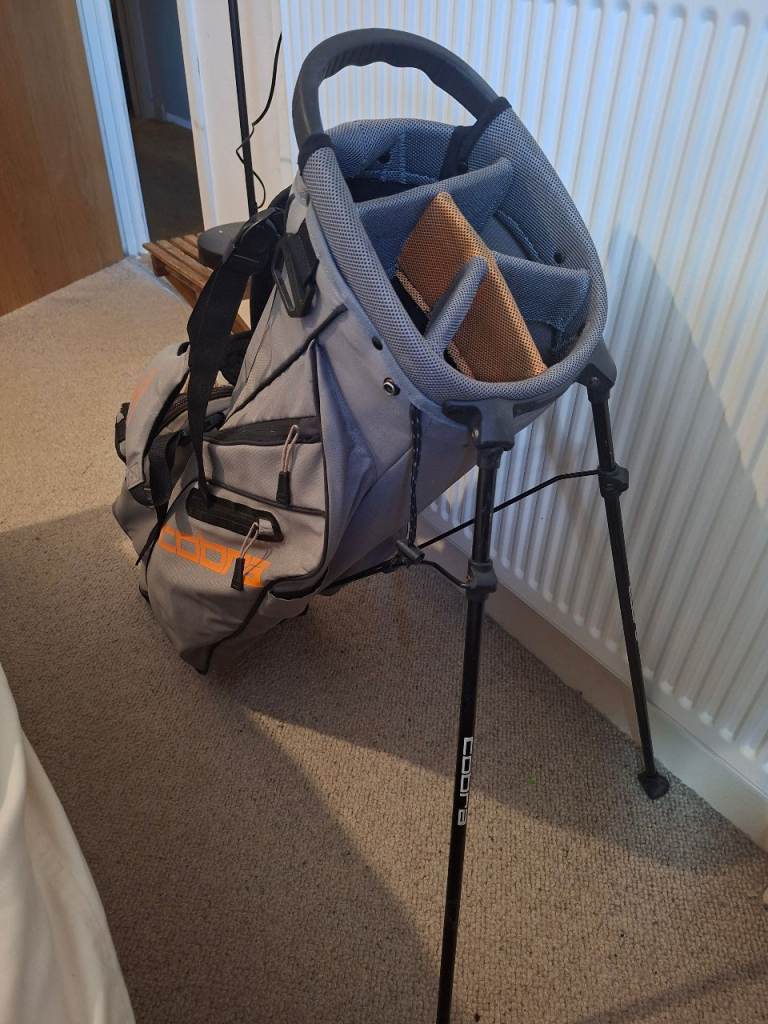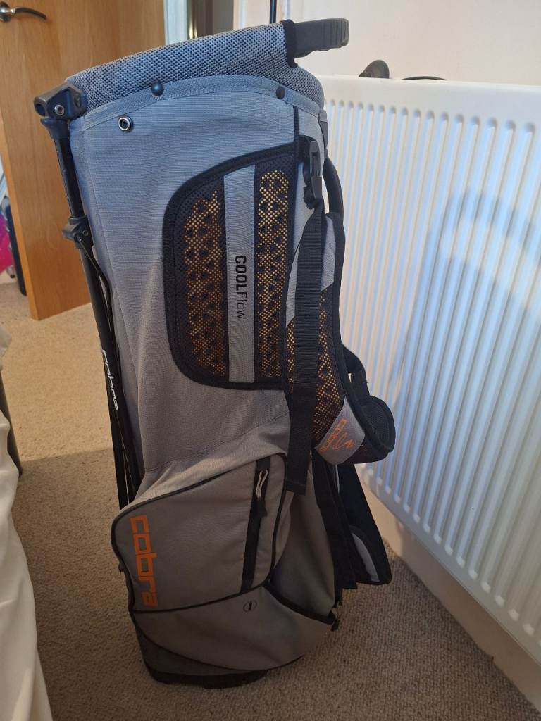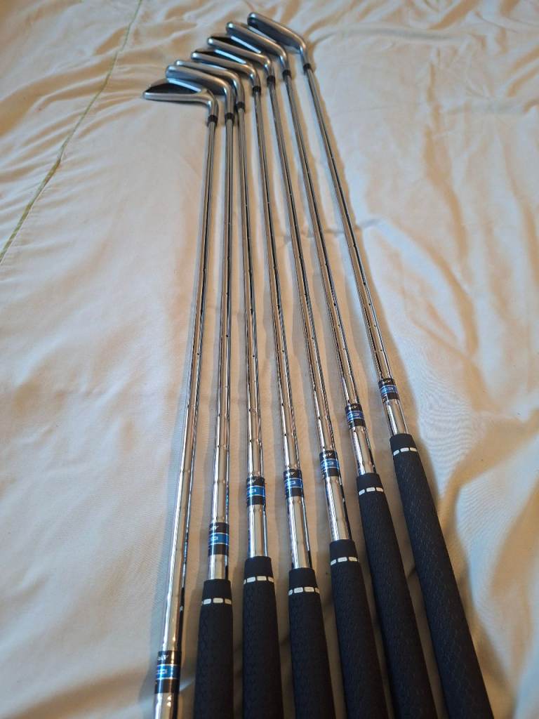 Hi here im selling my irons and bag only selling due to a recurring back problem. Irons are right handed numbers 5 6 7 8 9 sand wedge pitching wedge and in excellent condition like new .. and my cobra carry bag with tripod legs again in perfect condition thanks for looking.