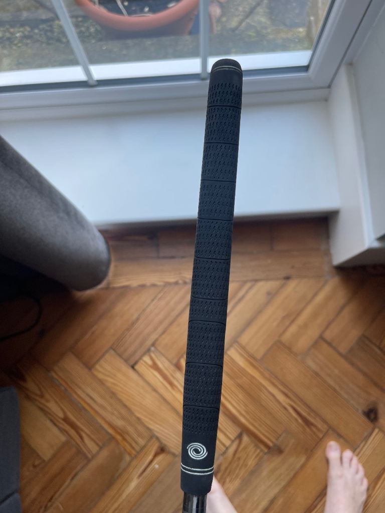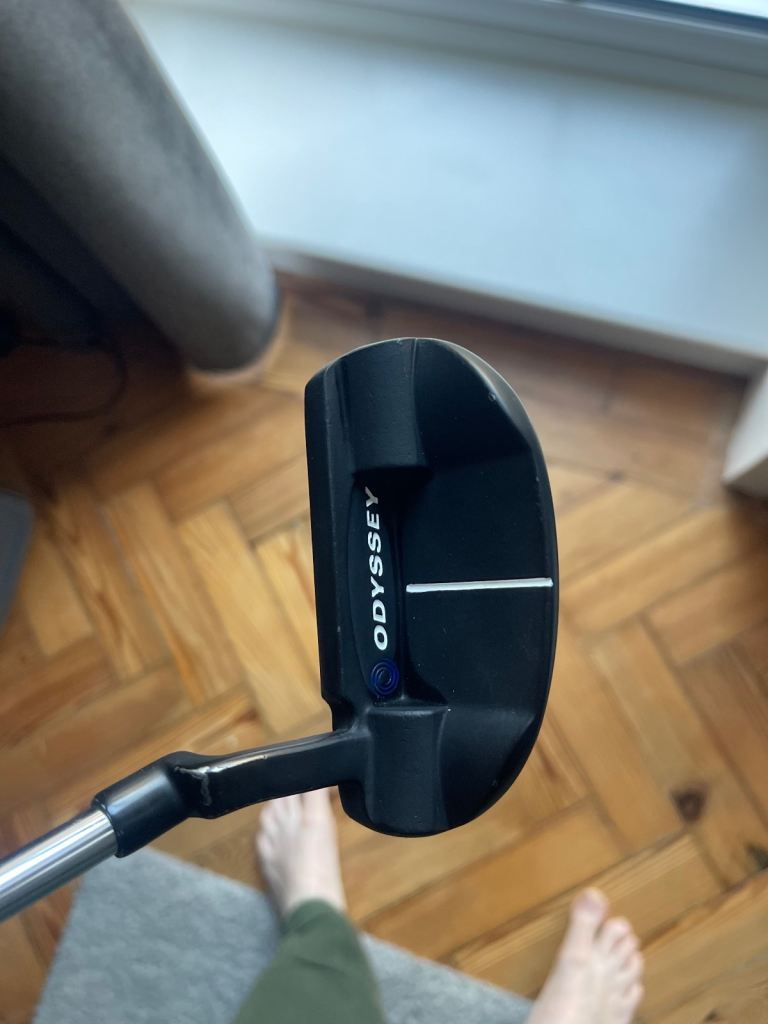 This is the Odyssey XT 330M Putter. Designed for right-handed juniors, this mid-mallet putter has a steel shaft but comes without the head cover, lost on the side of a green somewhere!