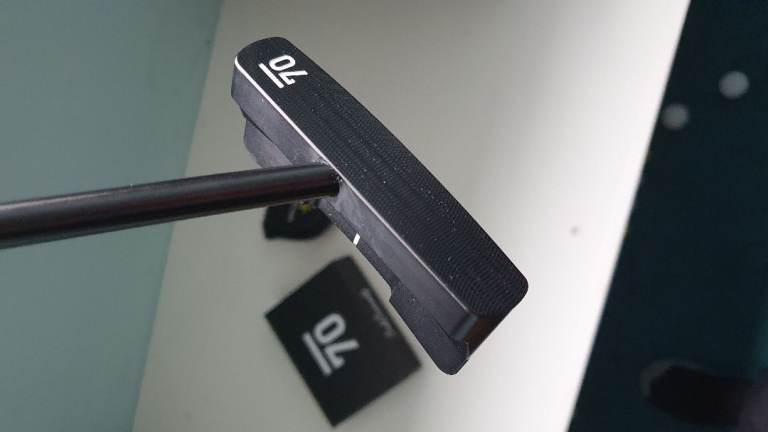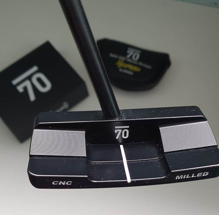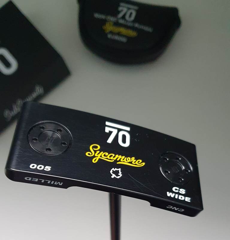 A Sub 70 100% CNC Milled Sycamore 005 CS Wide Putter. Centre shafted with a Matte Black 35 Inch shaft.