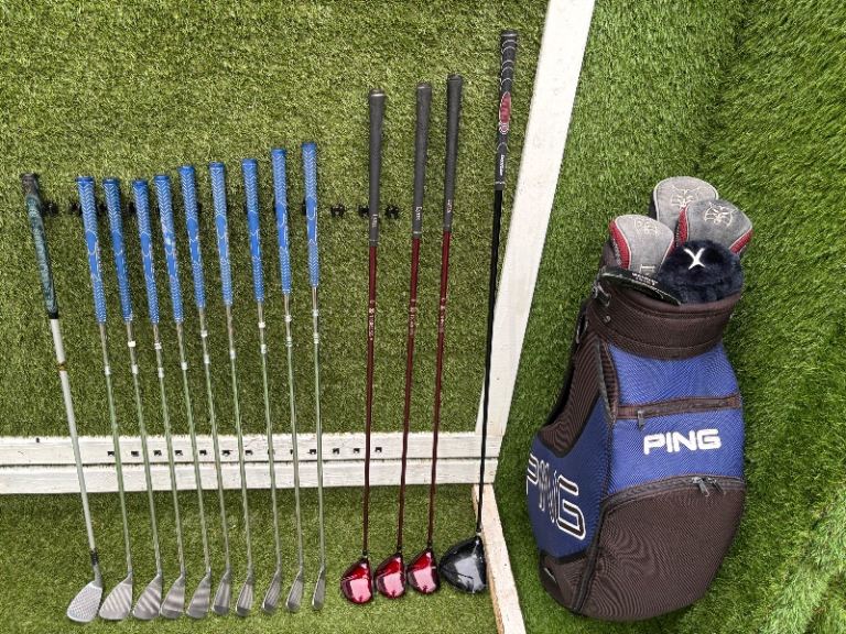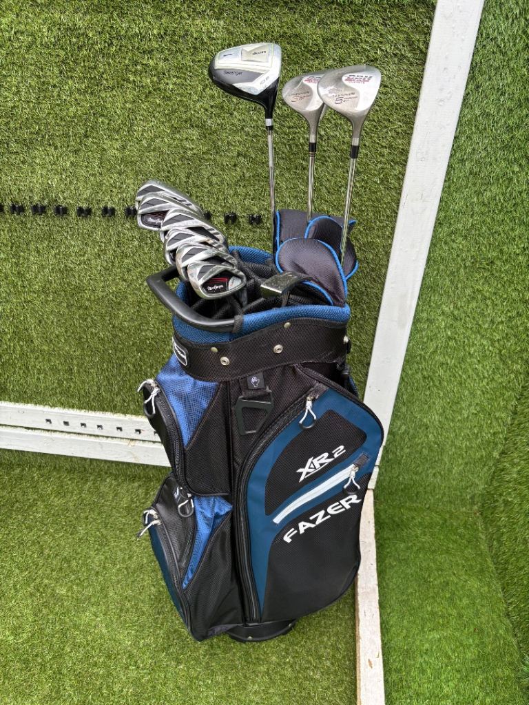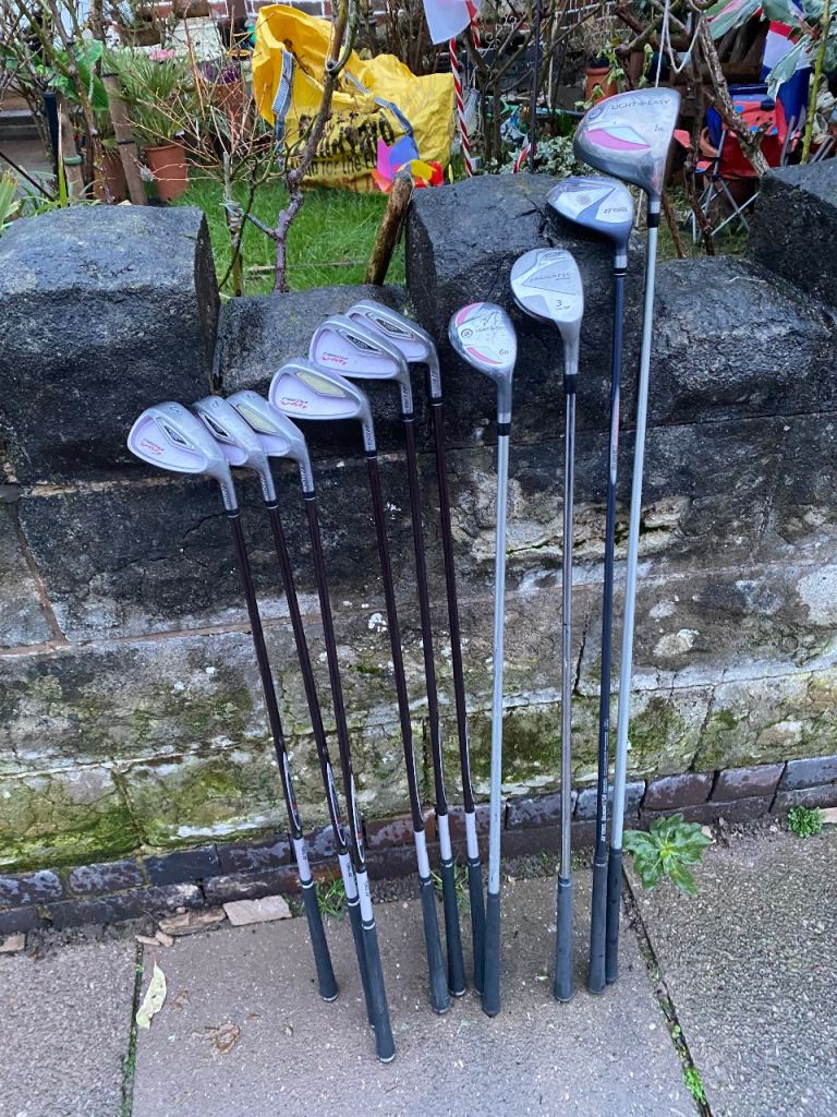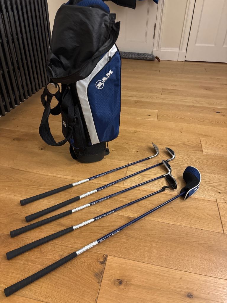 4 small crazy golf clubs. easily stacks in a shed, best used with golf balls( adults) or ping pong balls for kids