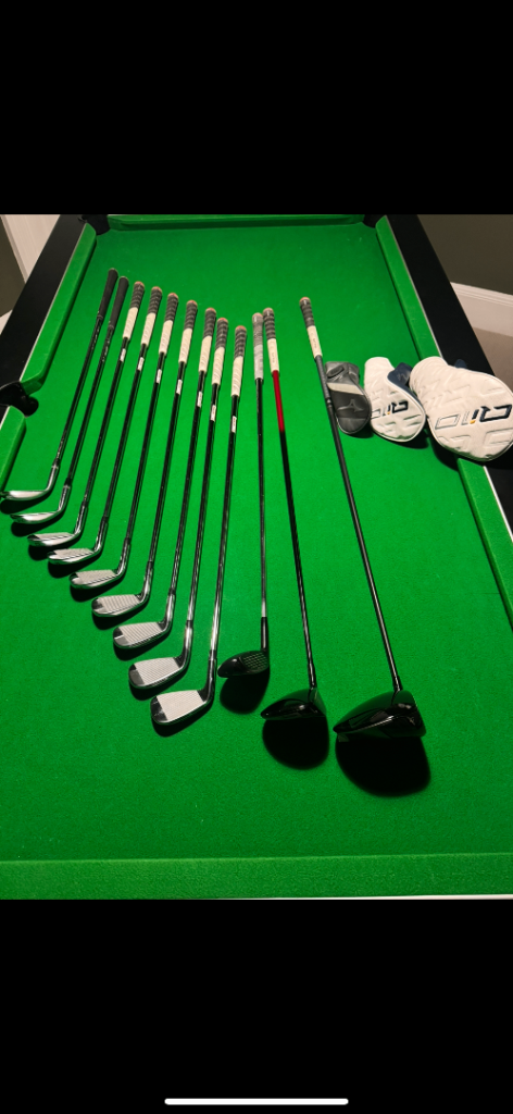 Full set of clubs + barely used m5 connect motocaddy trolley