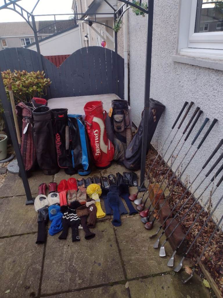 GARAGE CLEAR OUT LOADS OF GOLF CLUBS. 26 DRIVERS. 5 PUTTERS. 82 GOLF IRONS. 8 BAGS. 28 HEADCOVERS.