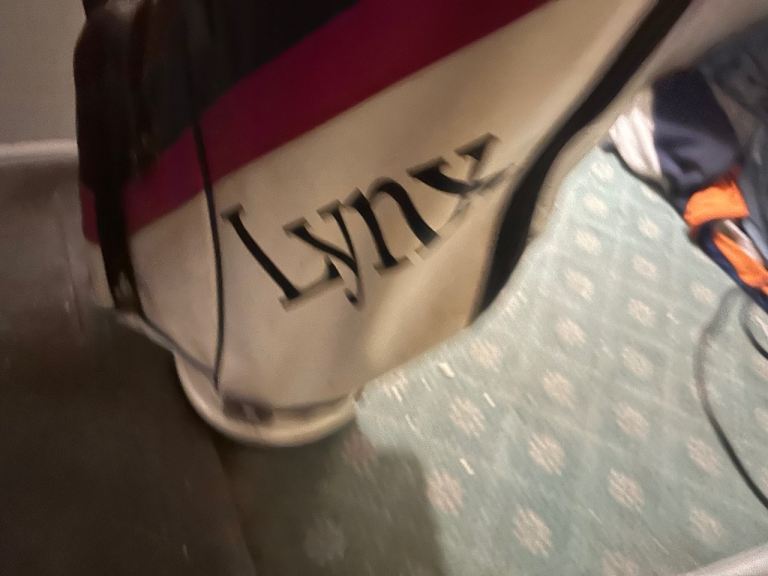The bag is white with red and black accents, and the brand 'Lynx' is visible.