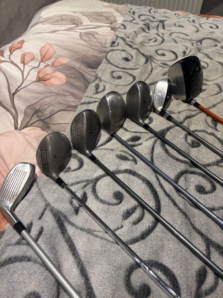 Includes driver, 3 wood, 4 hybrid, 5 iron through sand wedge. All grips in good condition.