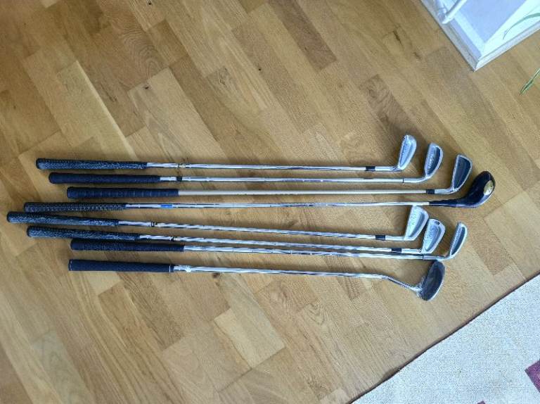 Golf starter package includes a set of clubs, along with a 7-iron club and a new Donnay challanger 3 putt All theb clubes are for right handet persons.