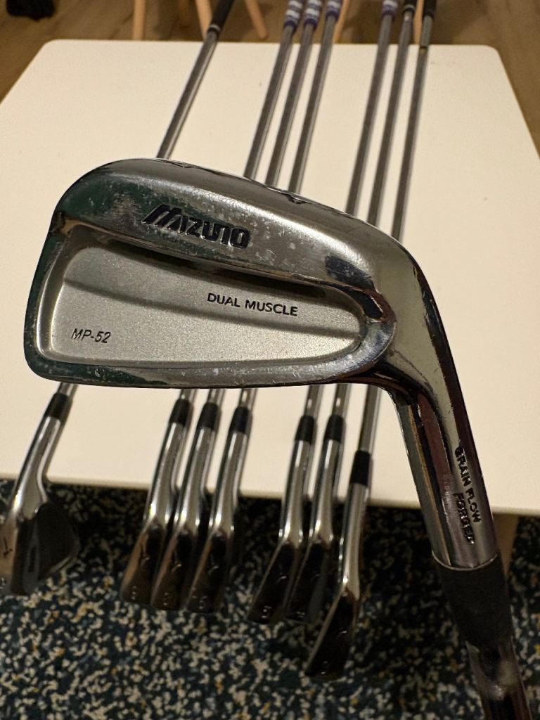 Mizuno MP-52 Irons 3-PW. Standard loft and lie. Modus 3 stiff shafts. New midsize MCC Golf Pride grips 4-9 irons and tour velvet on pw,3 and 4 irons. 3 iron has a regular shaft as wasn’t used in my set. Great condition