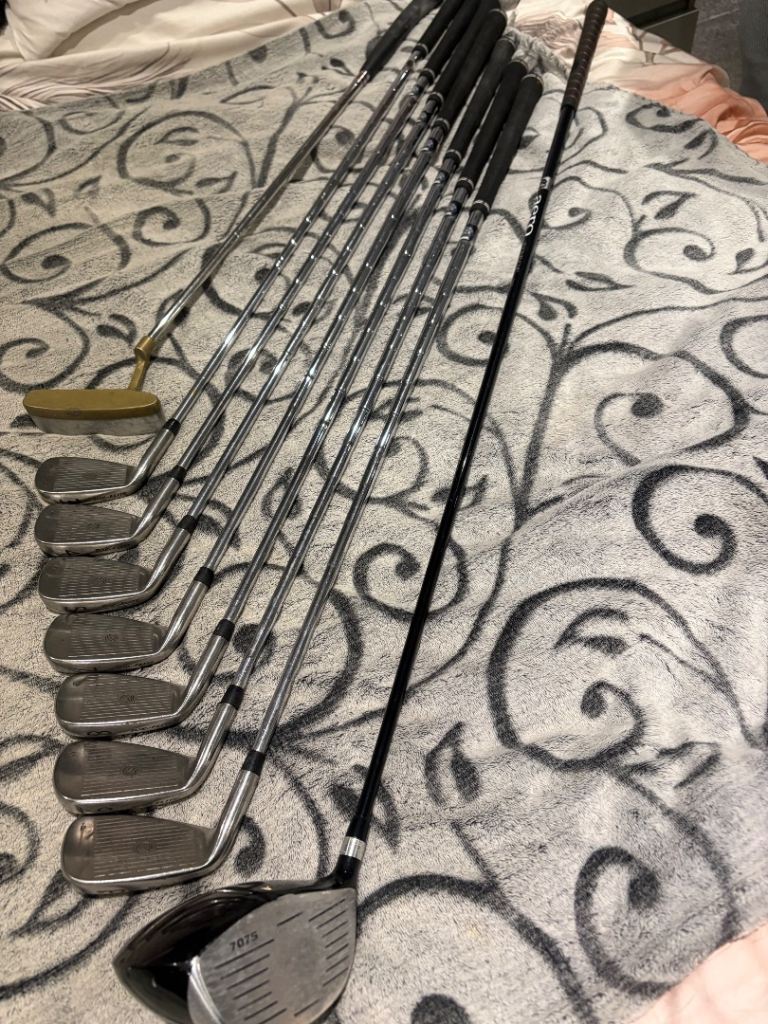 Would suit beginner mitsushiba driver, top flite irons and putter in fair condition