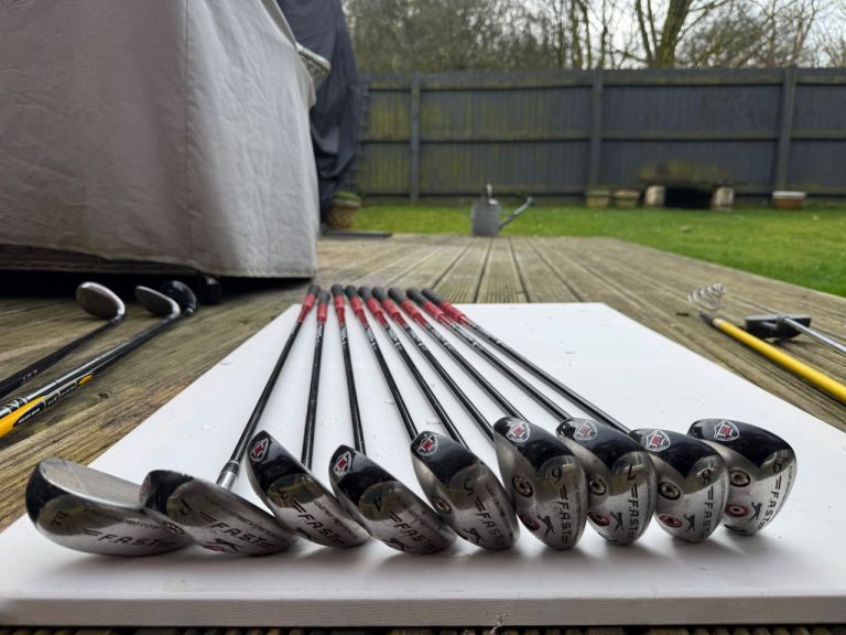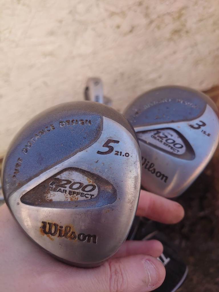 Got a set of Wilson golf clubs for sale. Also has the Wilson bag which came with it and has the two legs you can extend out to rest it while you take your shot. Or for a round 100 you can also have the trolley/caddie so you can enjoy your game without having to carry everything. First come first served. I'm open to offers. Please text if have any questions as can't answer the phone straight away. Thank you. Sorry, also there is a John letters platinum milled tramline trilogy putter which had the cover with it. I'll include that too.