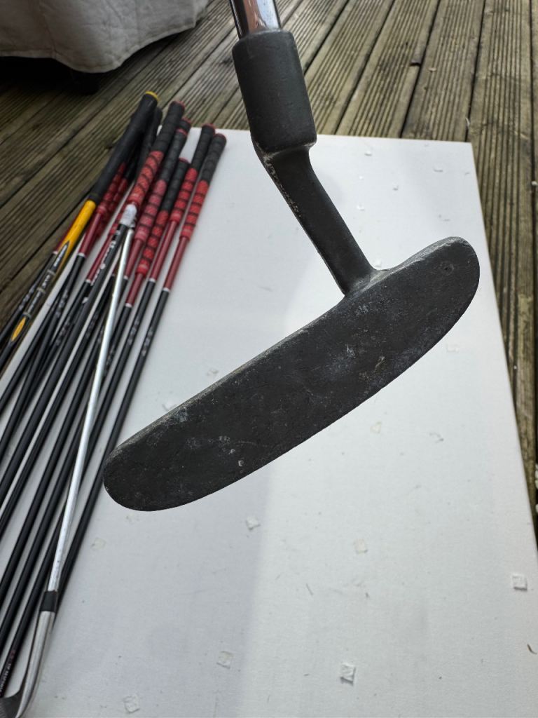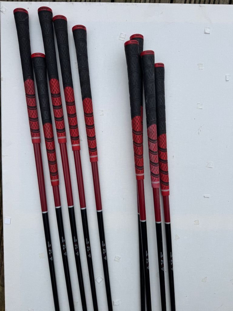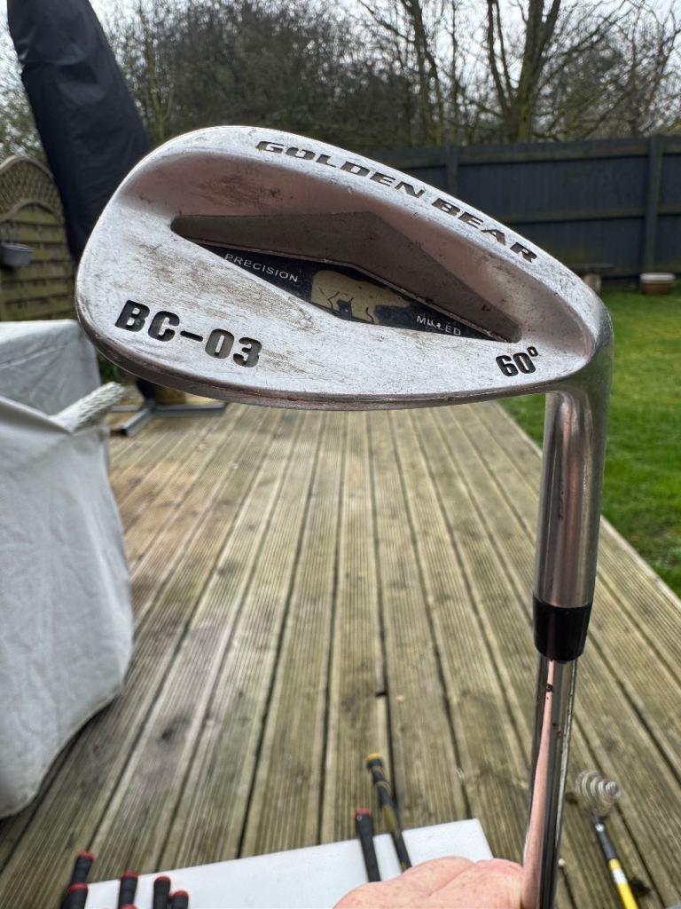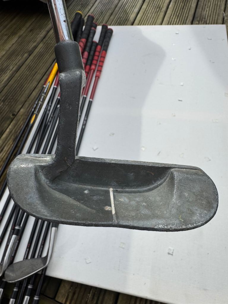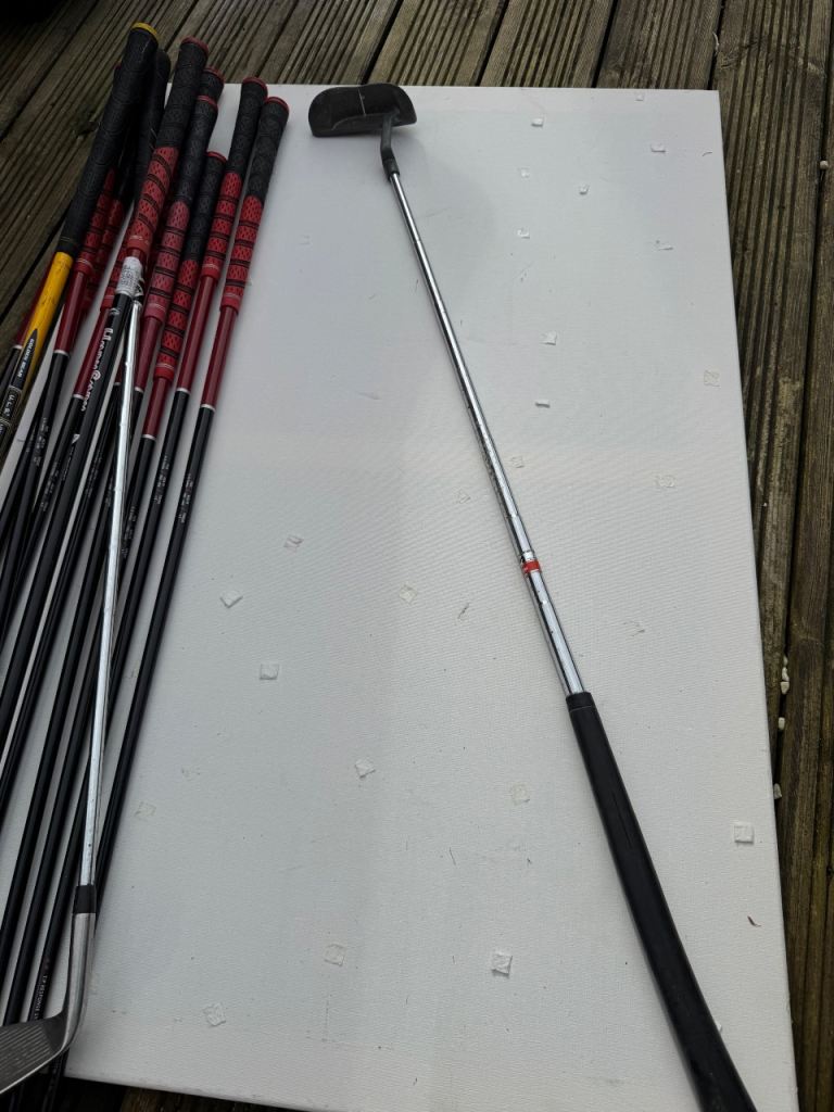 A full set of Slazenger FAST clubs ranging from a driving iron through to pitching wedge. Clubs 3-9 and also included in the bundle is a putter, sand wedge and Golden Bear hybrid driver. Decent condition