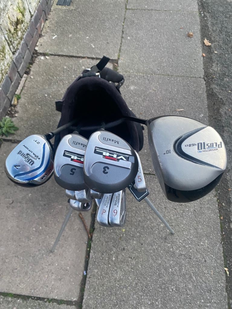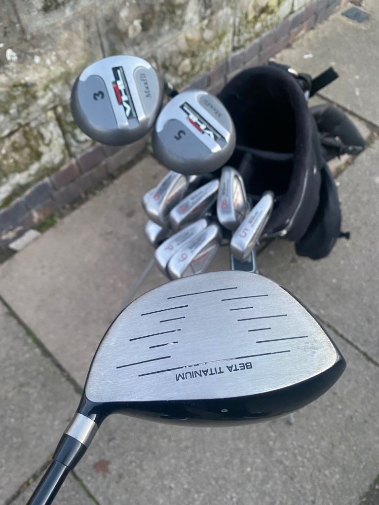 It all Starts here with a Great Starter Golf Set with Quality within Wilson High Trajectory Irons 3-Pw Snead HT +Wilson Deep red Sw+ Driver 10d 460cc Plus 10+ Maxfli VHL very high loft 3-5 woods + Ram Wizard 7 wood + F4 Chipper easy chipping + Fazer Putter + Standbag Rivera Zips Good Raincover provided Mens Game improvement Right Handed Golf Set Cash Only Please Collect from Coventry Cv2 No Offers