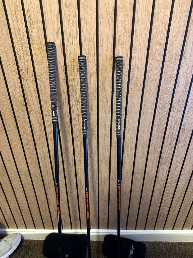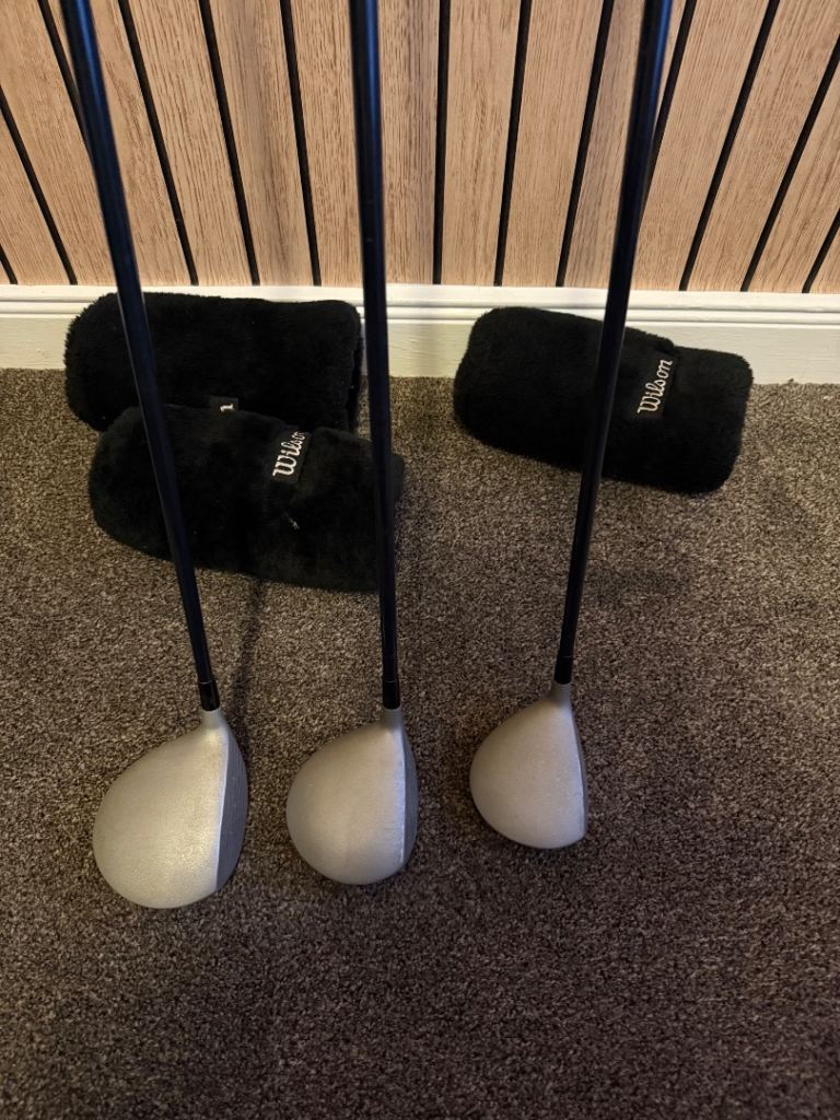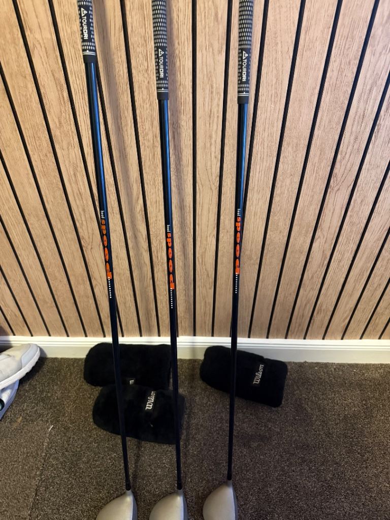 For sale this Wilson pro staff driver 3,5 wood set all are regular flex and all have newish matching grips fitted and all come with Wilson head over would be ideal for a beginner just starting out without breaking the bank overall all are in good condition