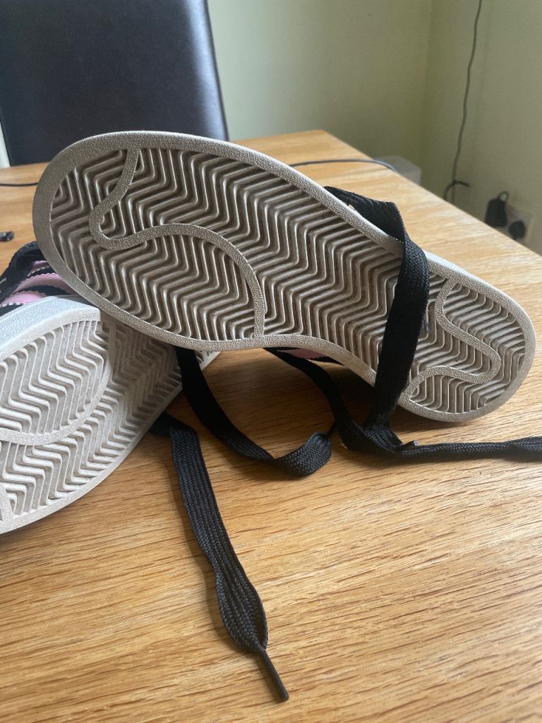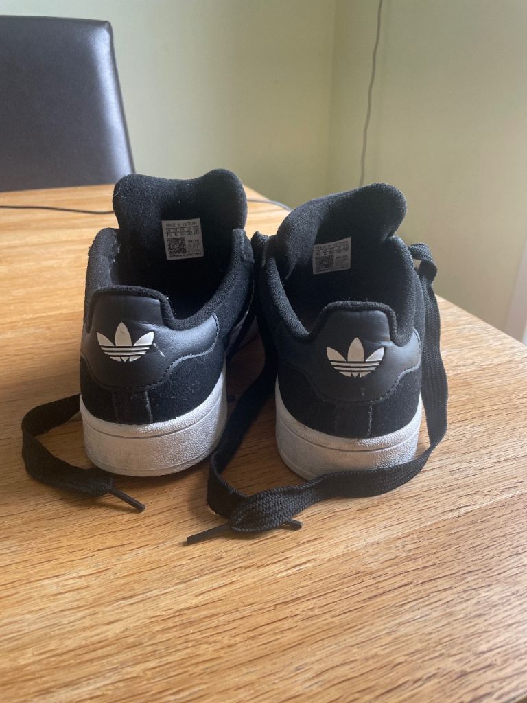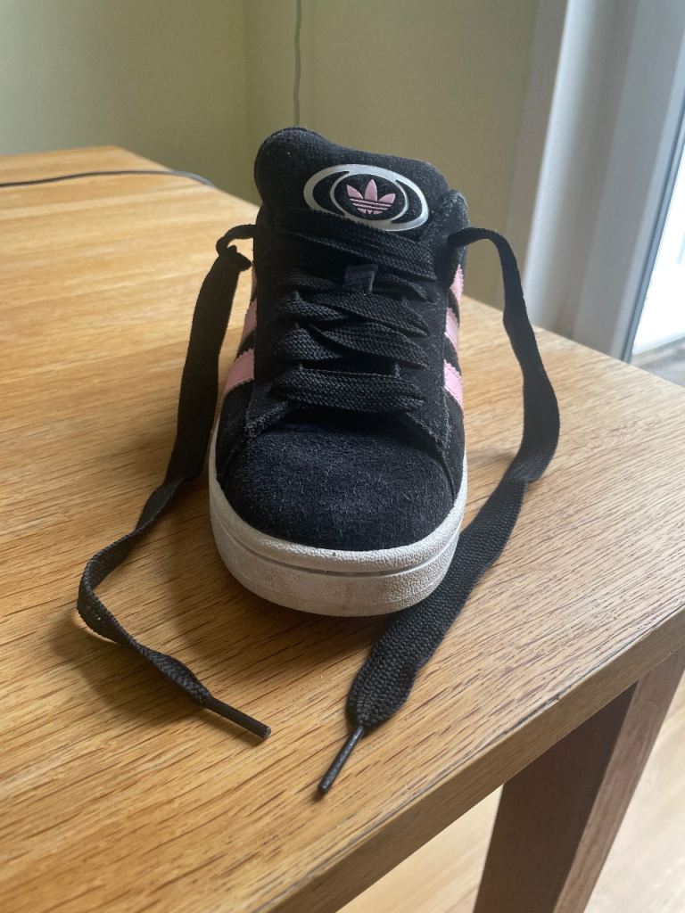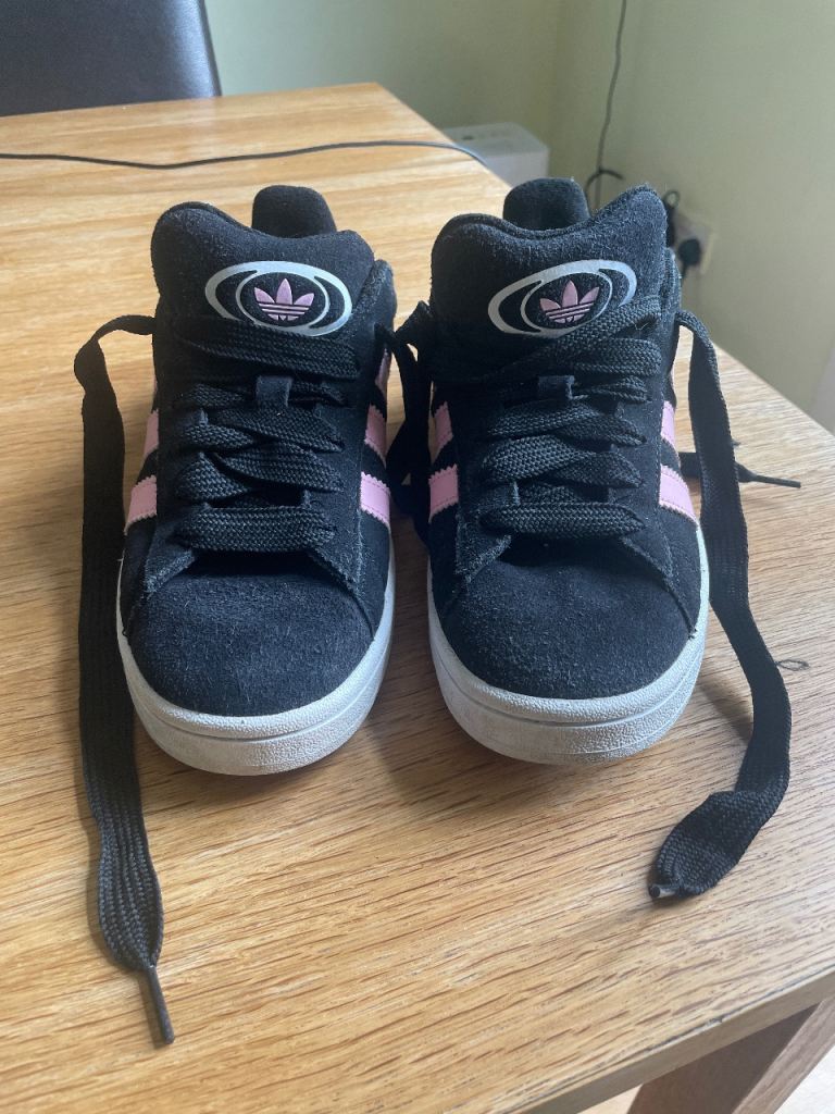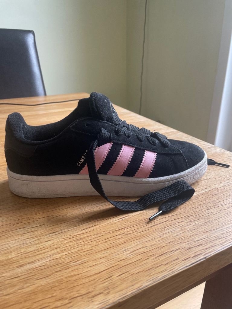Size 6 (UK) Adidas Campus training shoes. Black with pink stripes.