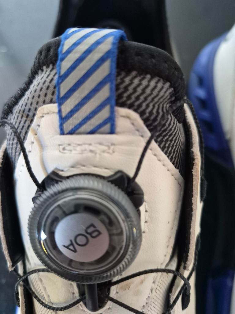 These are an unwanted gift. They have only been worn once . The shoes have a BOA closing system so no laces in the way. They are extremely comfortable and waterproof .