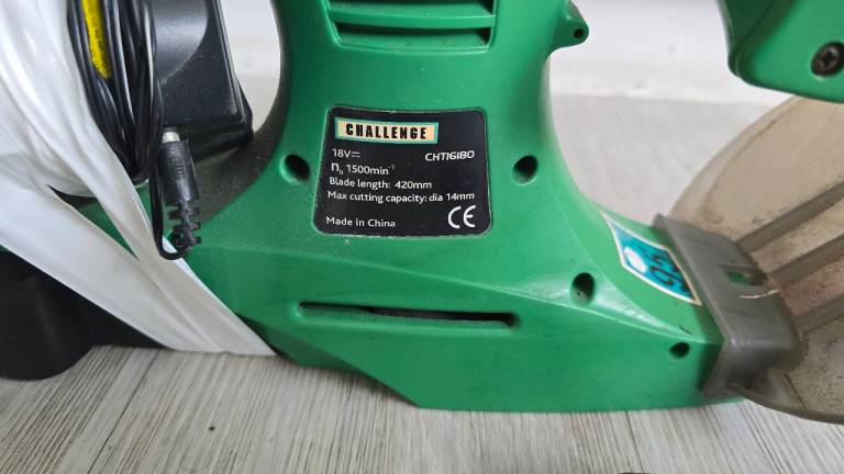 Fully working good condition Challenge, Cordless Hedge Trimmer with one battery and charger, 18v