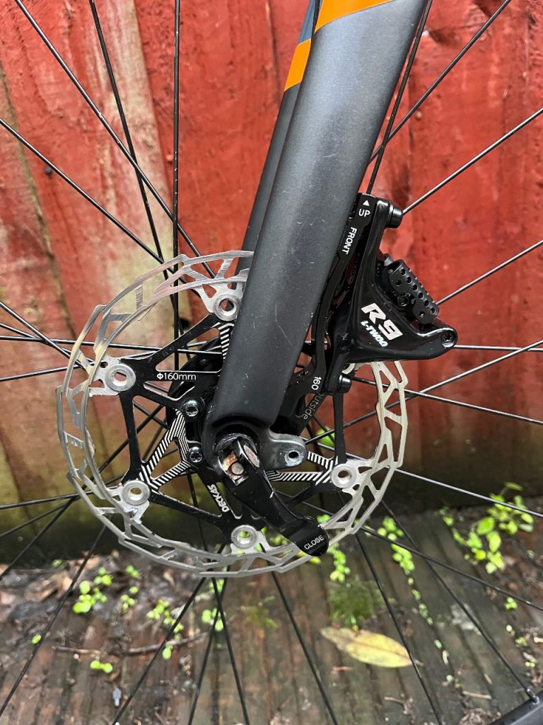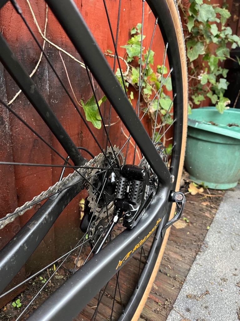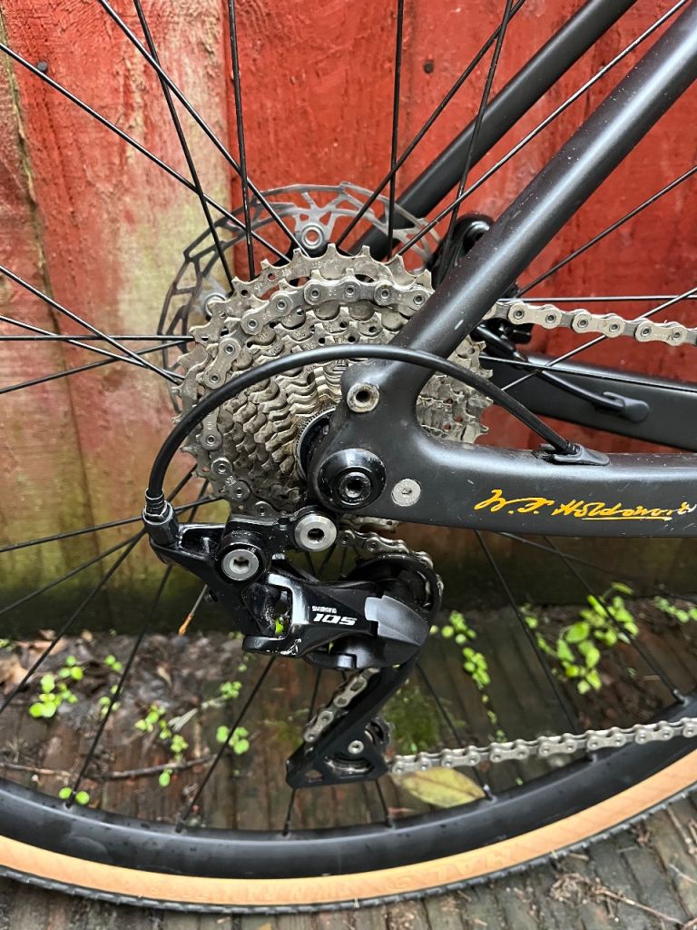 Fantastic carbon fibre gravel frame that I’ve custom built leaning towards road/light off road riding but its such a versatile frame you can configure it how you like, it has clearance for much bigger mud tyres, you can fit front and rear racks, full mudguards, stick a larger cassette on and run it 1x, its a do it all frame set. 54cm full carbon frame and tapered steerer forks, 12mm thru axles front and back, flat mount disc callipers. Shimano 105 22speed hydraulic gearset with 11-32 cassette and 50/34 compact chainset, SPD pedals, alloy wheels with 6 bolt floating rotors and new Halo Twin Rail tyres, new L2 flat mount disc callipers, Kona bars with Specialised stem, SDG saddle. Excellent condition and fully service with new chain, bottom bracket, stainless gear cables, etc, etc.