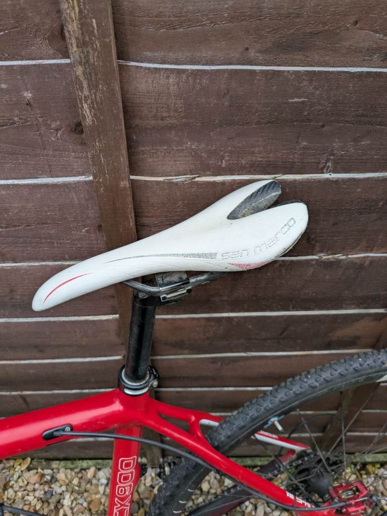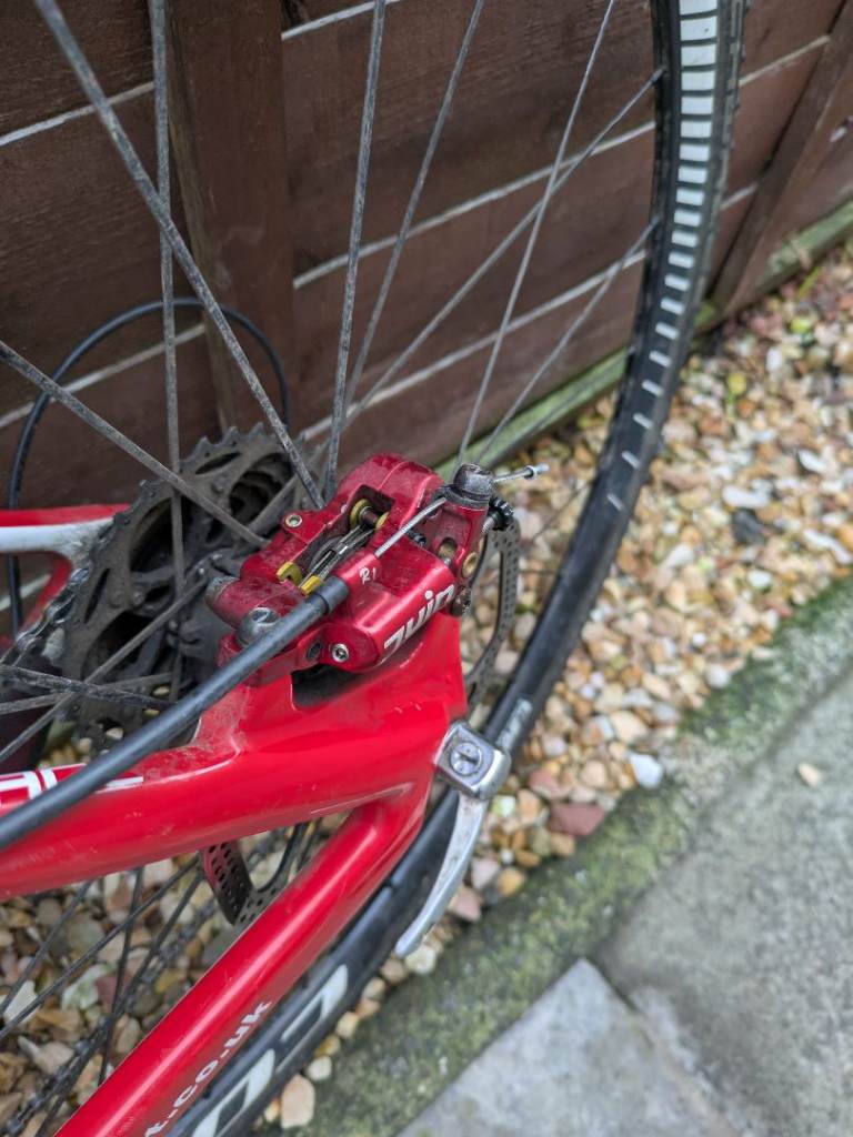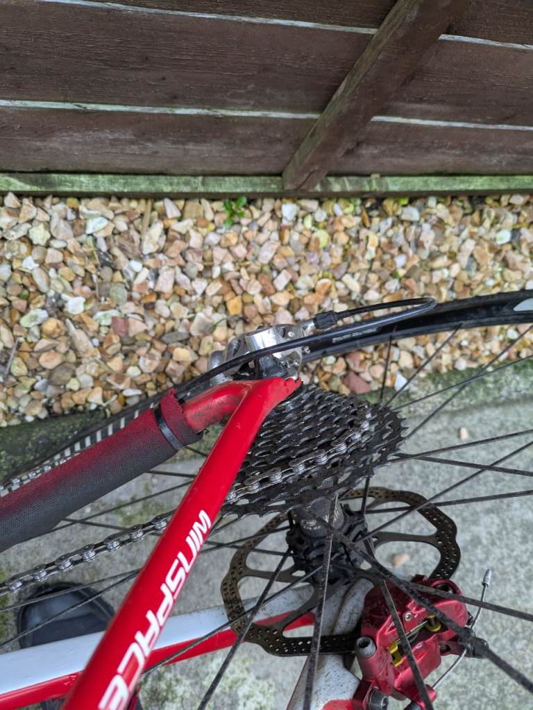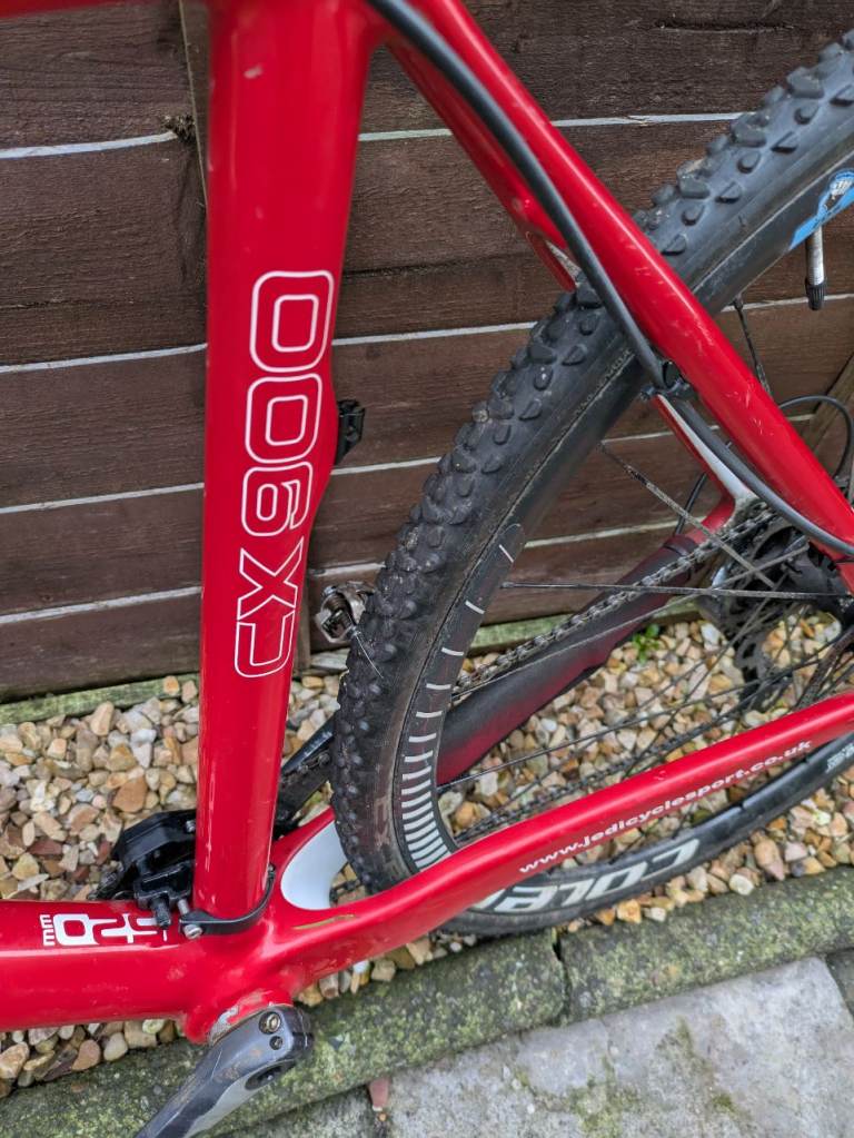 This Winspace cyclocross bike features a carbon fibre frame in a stylish red colour, designed for smooth and efficient performance on off-road trails. With a 52cm frame size suitable for unisex adults, it boasts drop handlebars and hydraulic disc brakes for reliable stopping power. The 700C wheel size and derailleur gears ensure a smooth and precise gear change, while the lightweight design and bottle cage make it ideal for long rides. Collection only.