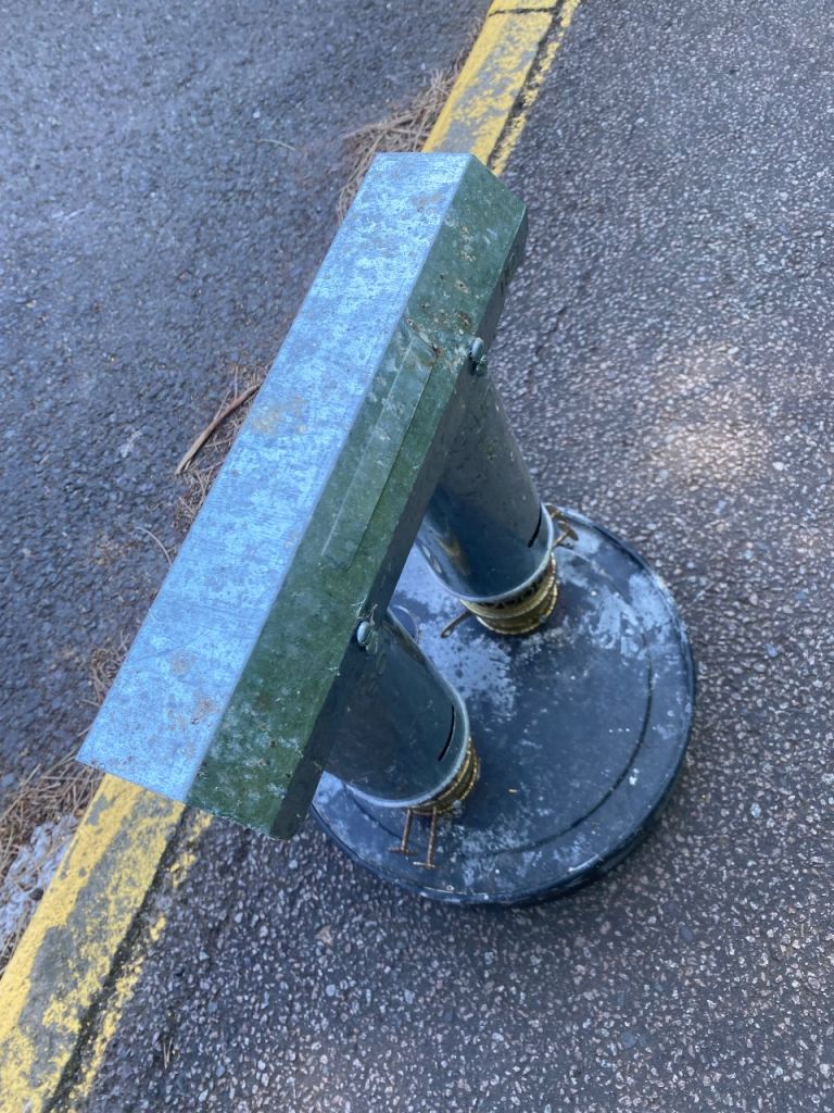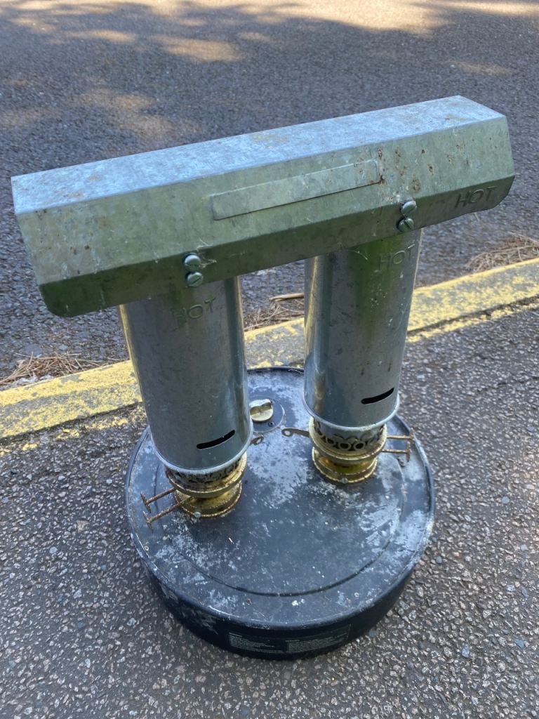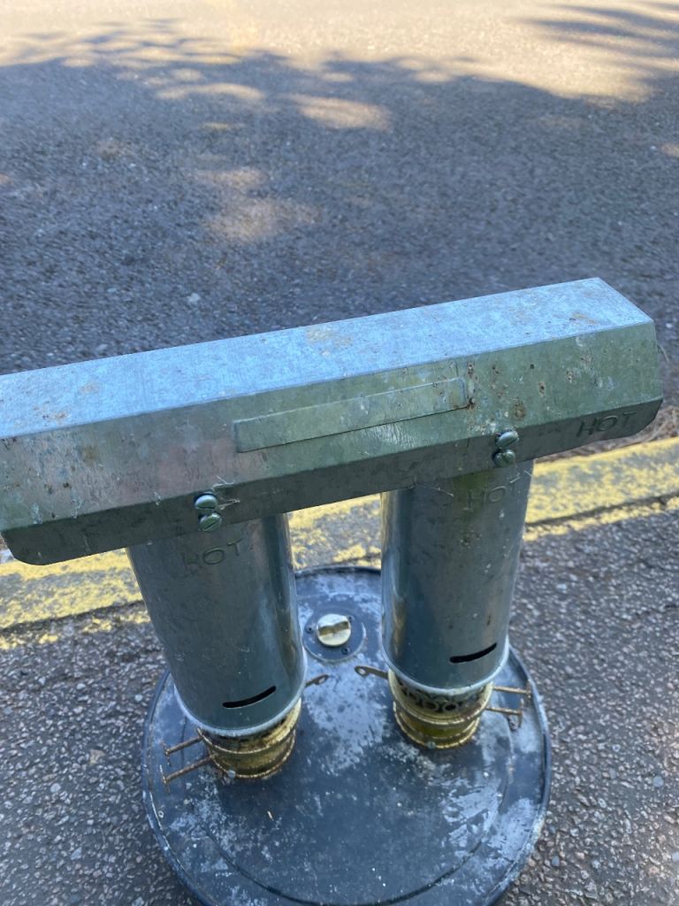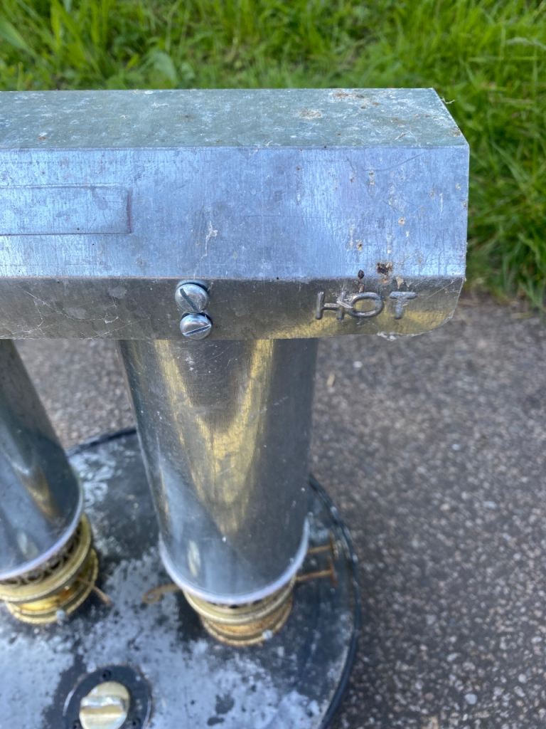 Made from sturdy metal, shows some signs of use and weather but is fully functional.
