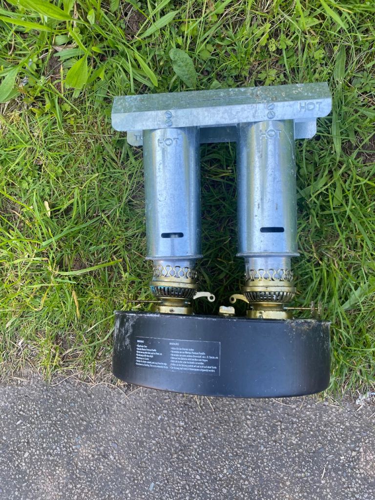 Double Burner Paraffin Heater – Grey Metal, Good Condition