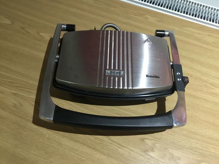 Compact Quest electric grill, suitable for sandwiches, paninis, and basic grilling.