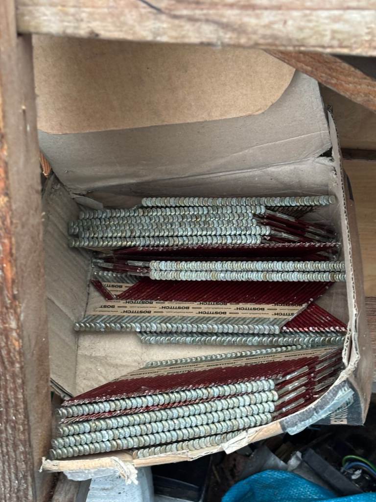 1. Bostitch collated framing nails (mixed types, part-used)
