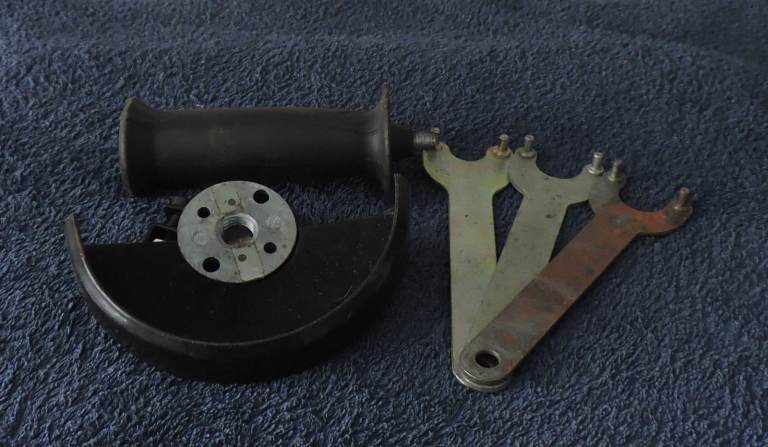 Peg spanners, spare hand guard and handle.