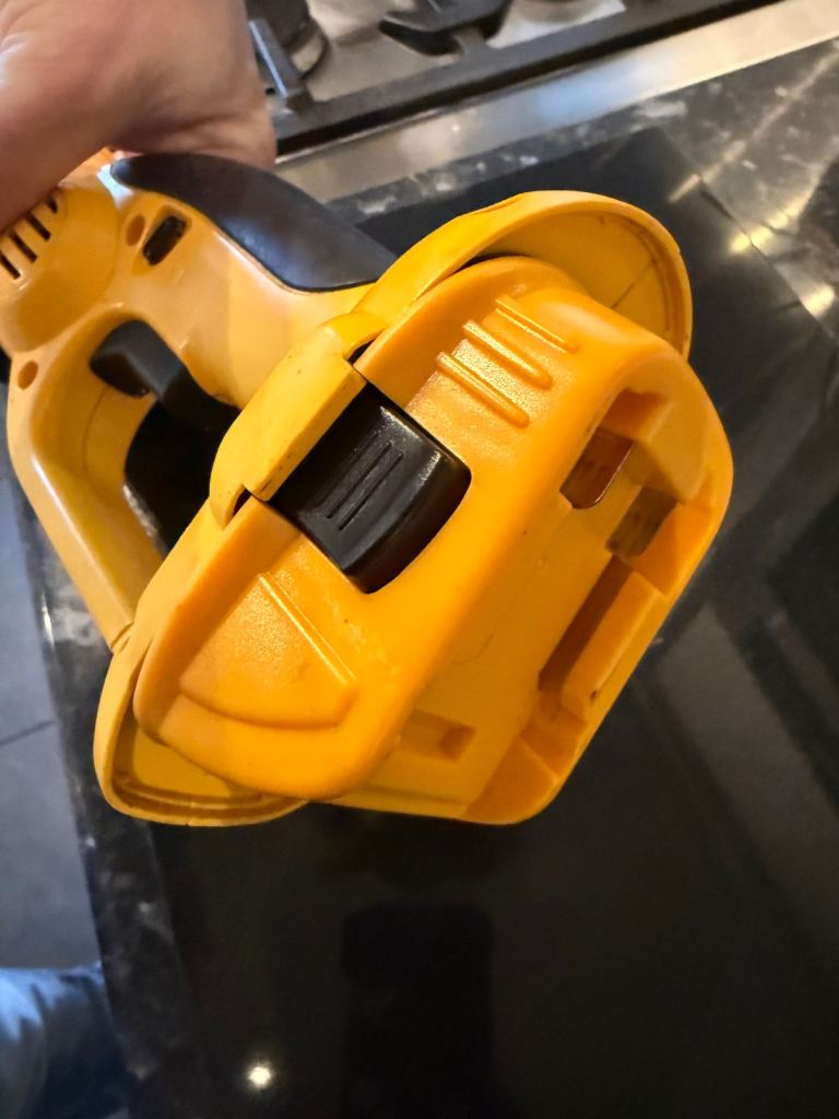 Comes with adapter to fit the new style battery’s. No handle or spanner to tighten up discs.