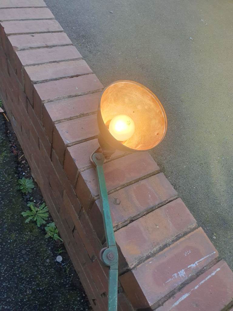 F244 Vintage Industrial Anglepoise Lamp & Clarke 6 inch Bench Grinder, Rusty But Both Work Fine.