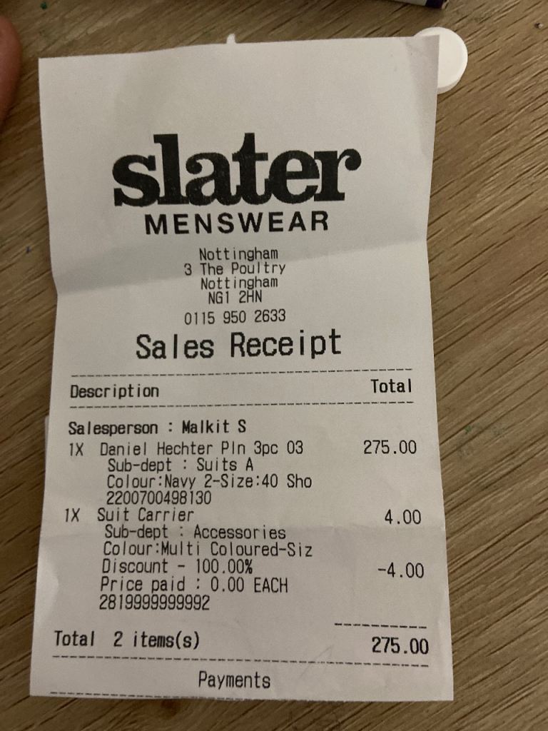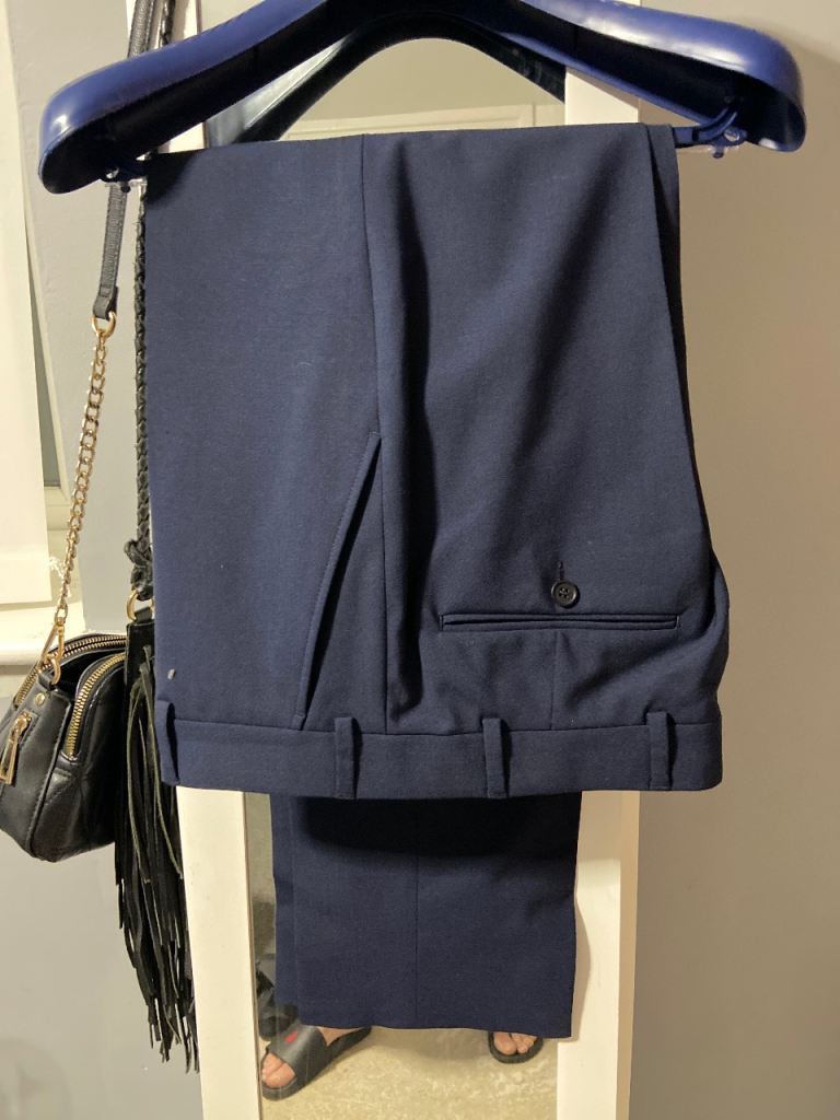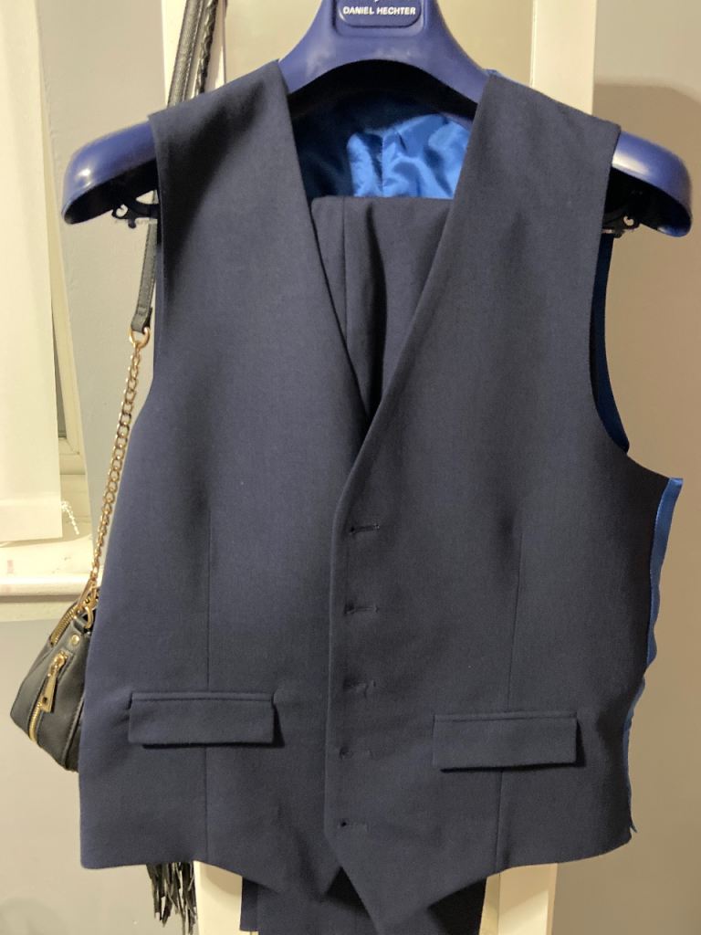 Brand new never been warm still got the receipt spanking condition come with suit carrier in navy slim fit