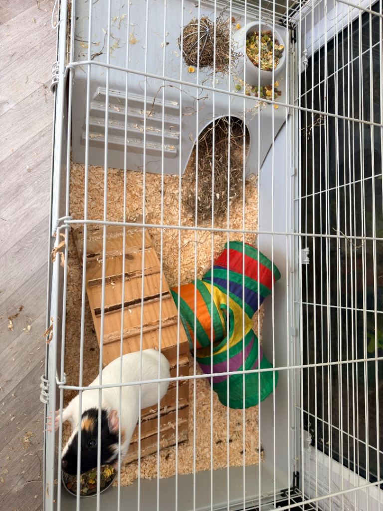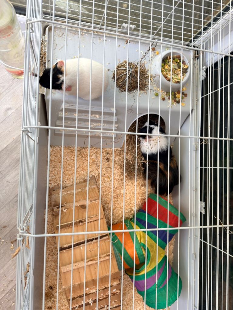 2 male guinea pigs and indoor cage with all set up in for sale. Used to being handled, we now have a crawling baby so they are getting as much interaction as they deserve.