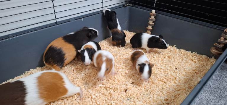 Guinea pigs for sale. 5 lovely female and 2 gorgeous male. They are nearly 2 months old. They are sold in pairs. Contact me for more info.