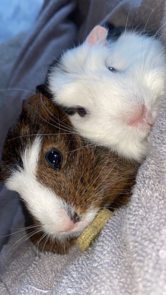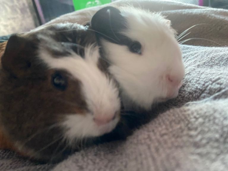 We have 2 beautiful 4 month old guineas for sale having to re home them due to not having enough time to be there for them due to work and also having cats who can’t adjust to them. comes with a cage, watering bottle , huts and teething toys as well as hay food pellets and wood chips for the cage.