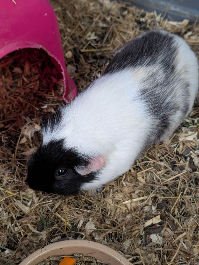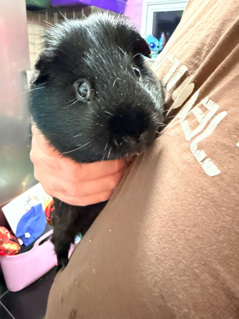 Hi , I am looking for a forever home for our black guinea pig. He is on his own and would probably prefer company from another guinea pig. He has grown up around children and dogs and other animals xx