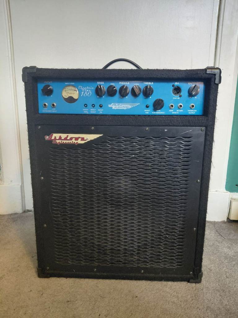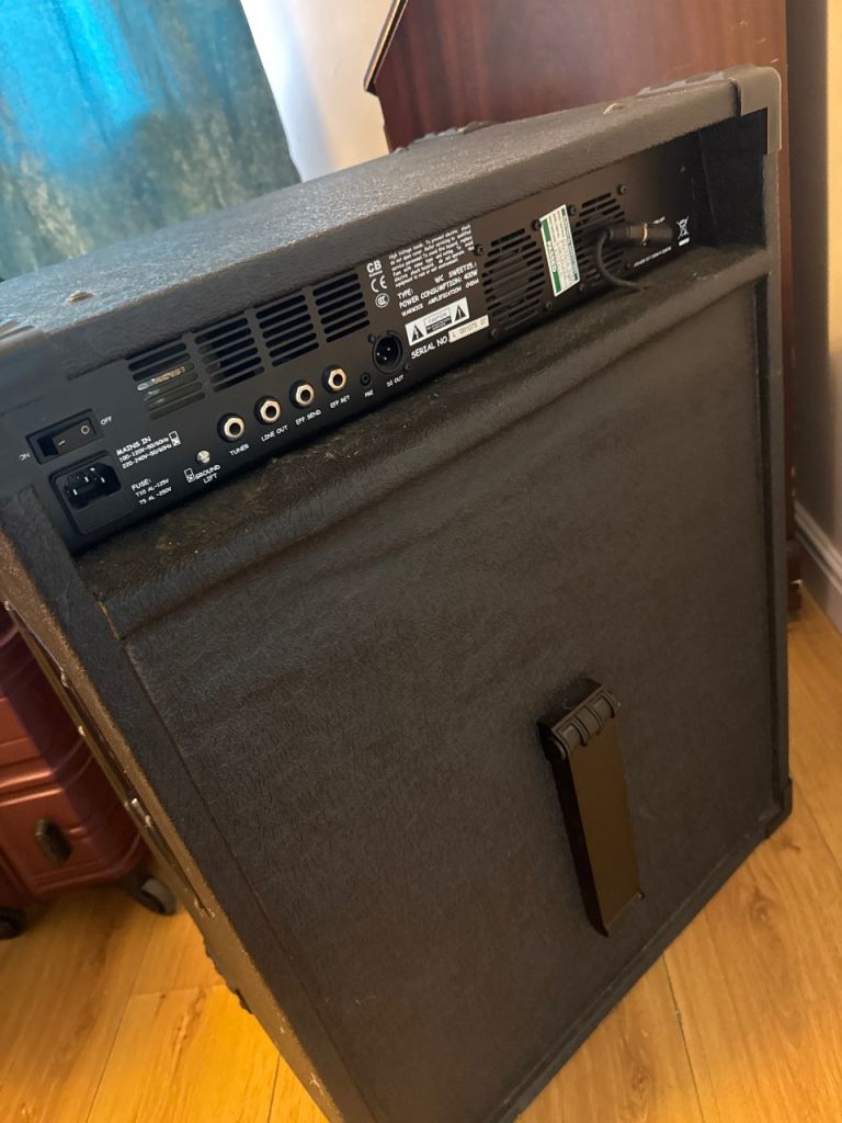 This is a Warwick bass amp, sweet 25.1. It’s approximately 300 watts in power and has hardly been used. It’s got a stand on the back for easy monitoring on stage and is in perfect working condition.