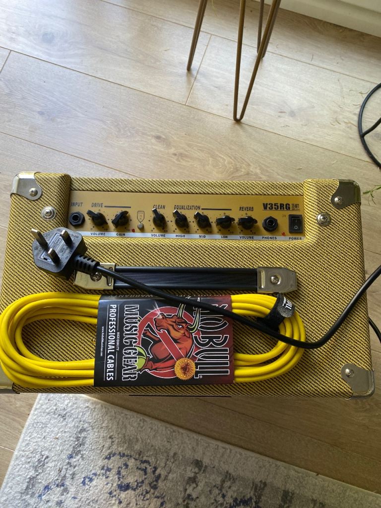 Excellent near new condition , size is around 14 inches square . Bought but never used . Comes with guitar lead . 35 watt output