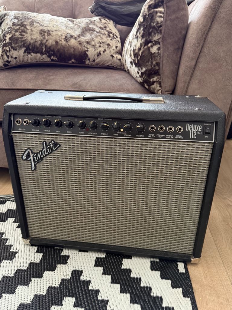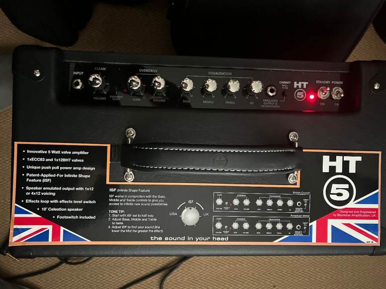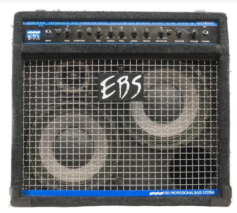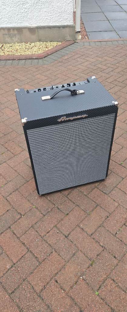 Bass amp, 15W. 2 channels with compressor and drive, EQ, Audio in for backing tracks, line out for recording/PA, headphone out for quiet practise.