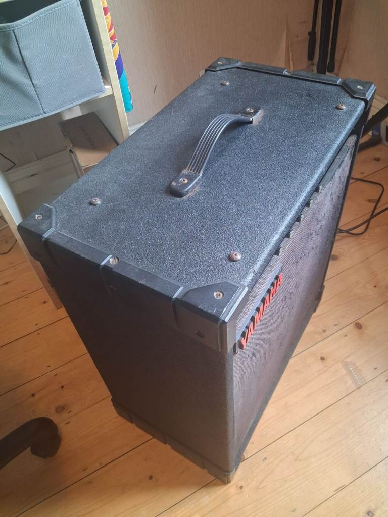 The casing screws are old and rusty and I've not been able to get inside – one screw head is a bit mangled from attempting it. So I'm selling it as-is. If you're handy and want to drill out the screws and do a proper job, it's a decent amp to restore.