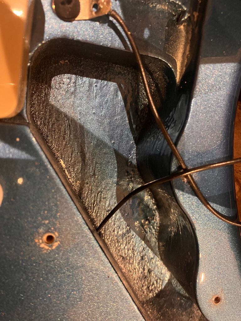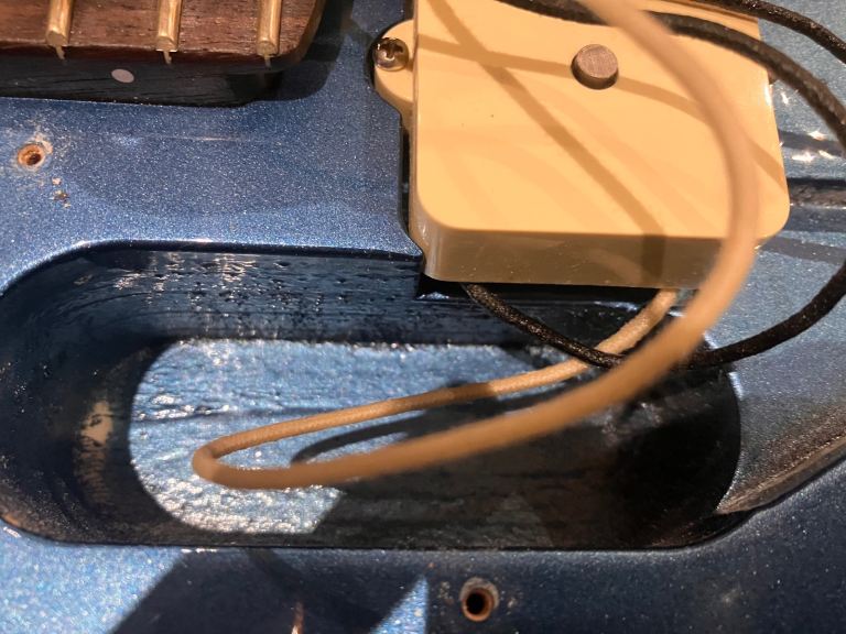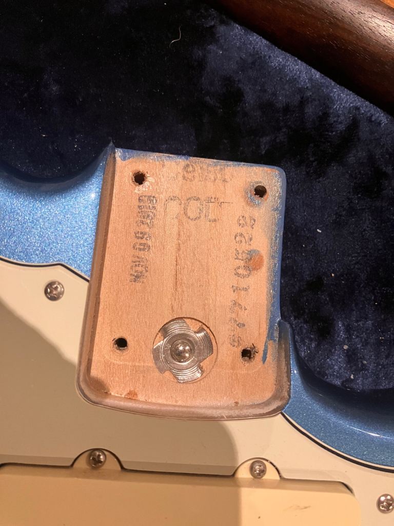 NECK POCKET HAS ORIGINAL FACTORY MARKINGS WITH NO EVIDENCE OF PAINT OVERSPRAY OR OTHER COLOURS ON THE EDGE...